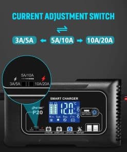 Cargador de batería de litio Dylannet 20Amp es un cargador de alta potencia que puede cargar rápidamente sin dañar la batería. Puede utilizarse en una variedad de vehículos, desde coches hasta barcos. Con protección y reparación de baterías automática, este cargador garantiza la vida útil de la batería. La función de carga de goteo mejorada detecta y repara las capas de sulfato y ácido, restaurando el rendimiento perdido de la batería y prolongando su vida útil. Con una pantalla LCD grande que muestra el estado de carga y de la batería, este cargador es fácil de usar. Además, viene con una garantía de calidad de 1 año y un servicio posventa las 24 horas.