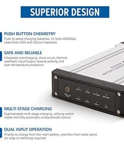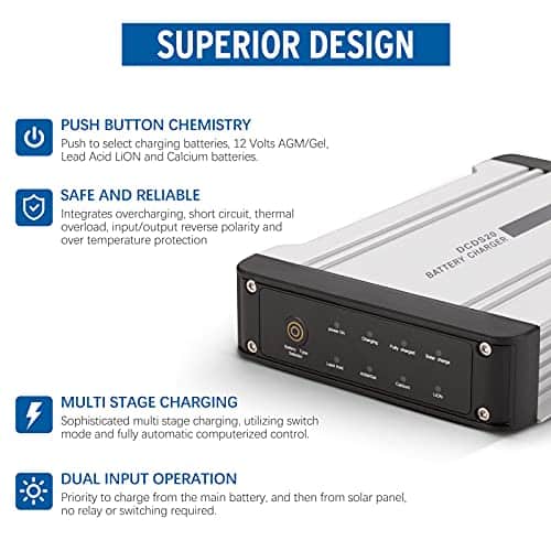 El Cargador de Batería Kanruis 20A DC a DC es ideal para vehículos 4WD, caravanas, RVs, camiones, campers y remolques. Con entrada dual, prioriza la carga de la batería principal y luego del panel solar, sin necesidad de relés. Su diseño superior incluye una carcasa de aluminio resistente y soportes de montaje, garantizando durabilidad. Utiliza el algoritmo de carga de pulso que selecciona el modo de carga óptimo y revivirá su batería descargada. ¡Mejore la eficiencia y extienda la vida útil de su batería con la carga de múltiples etapas integrada!