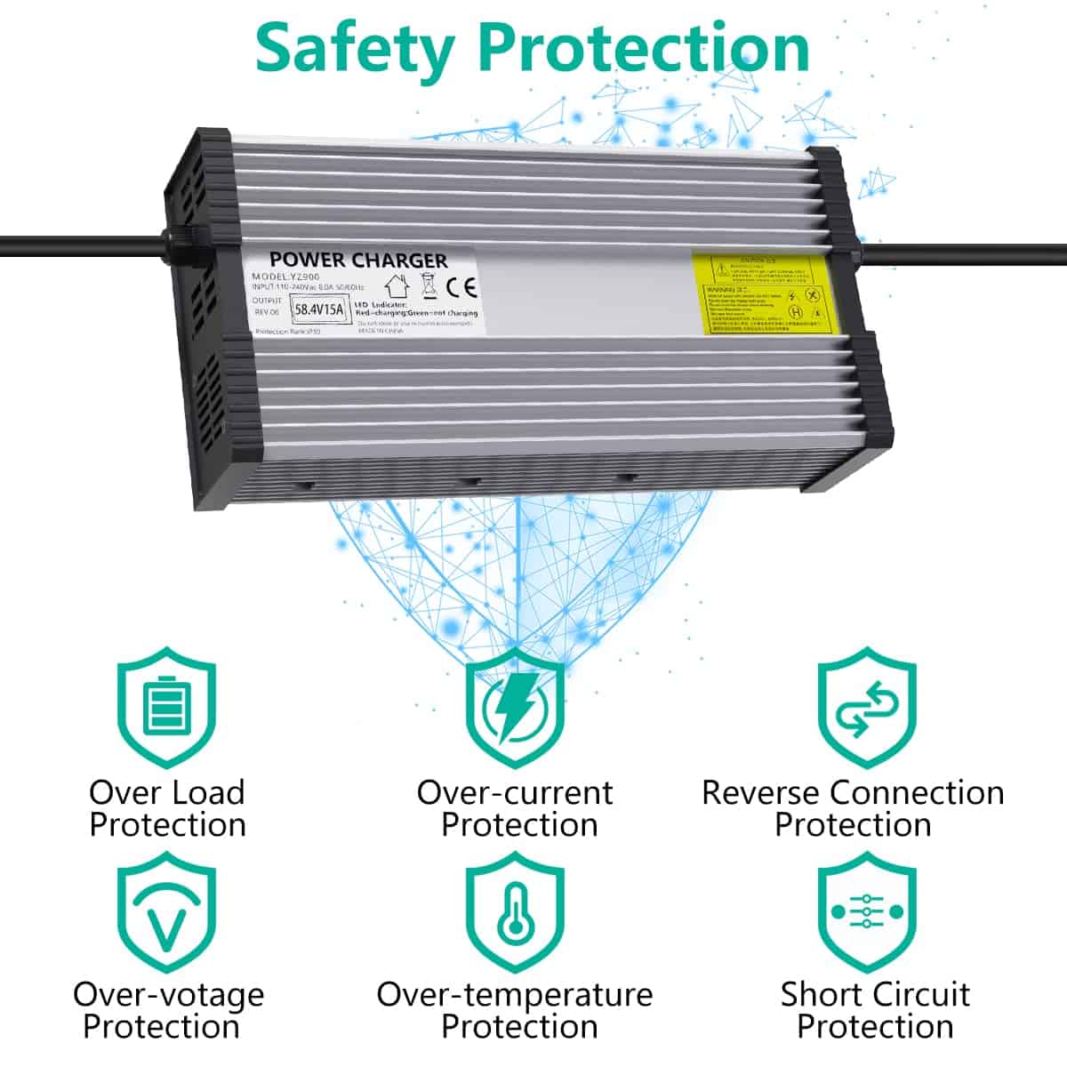 Cargador de Batería LiFePO4 58.4V 15A para Batería de Litio