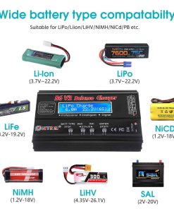 2. Compatibilidad con voltaje amplio: Utilice el cargador de batería de paquete balance en LiPo: 1-6 celdas; NiMH: 1-15 celdas; NiCd: 1-15 celdas; Li-ion: 1-6 celdas; PB: 2-20V; LiFe: 1-6 celdas; LiHv: 1-6 celdas; Batería inteligente: I,II,III. Muy útil.
