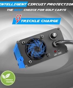3. CARGA TRICKLE Y CARGA SEGURA Después de que el cargador del carrito de golf de 48 voltios esté completamente cargado, entra en modo de carga trickle con la luz verde encendida. Se encenderá automáticamente para cargar si el nivel de la batería cae por debajo de un cierto nivel. El cargador para carrito de golf ajustará la potencia de carga según el nivel de la batería para protegerla. Cuando la carga es anormal, el fusible del cargador de EZGO se desconectará automáticamente para detener la carga. Simplemente reemplaza el fusible para que el cargador siga funcionando.
