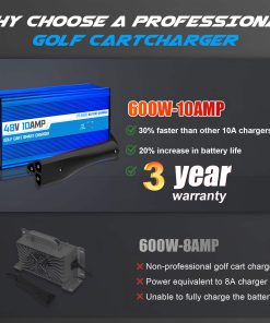4. ALTO ESTÁNDAR Nuestro cargador está certificado CE y RoHS, perfecto para tu carrito de golf de club, siéntete libre de usarlo. Elegir un mejor cargador puede prolongar la vida útil de la batería de tu carrito de golf.