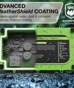 3. RECUBRIMIENTO IMPERMEABLE AVANZADO WeatherShield – Protege tu inversión con nuestro recubrimiento interno WeatherShield de última generación, diseñado para proteger los componentes eléctricos de tu cargador de carrito de golf de las duras condiciones climáticas. Nuestro cargador está equipado con un resistente ventilador de enfriamiento y cuenta con una clasificación impermeable IP67, asegurando durabilidad y rendimiento confiable en cualquier entorno.