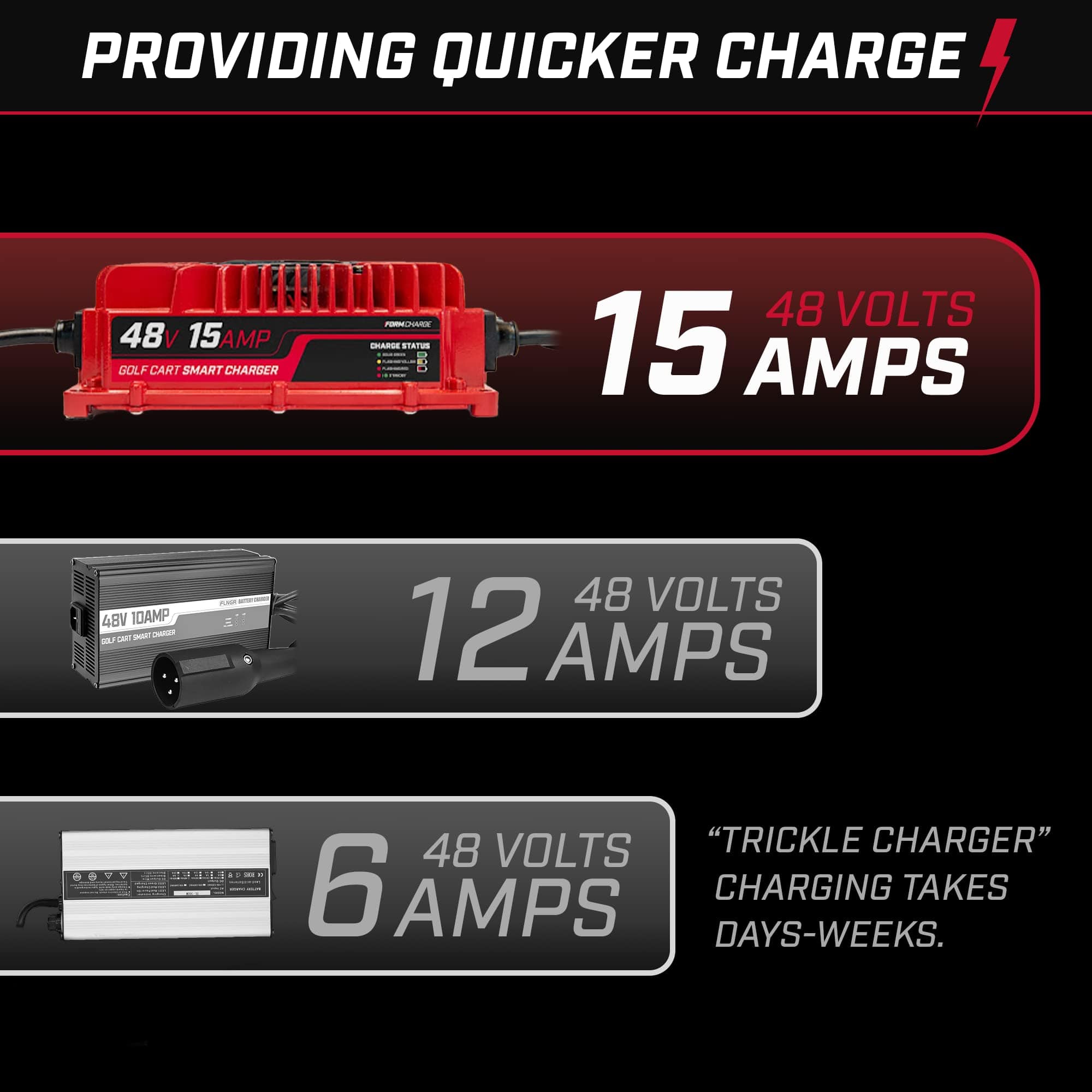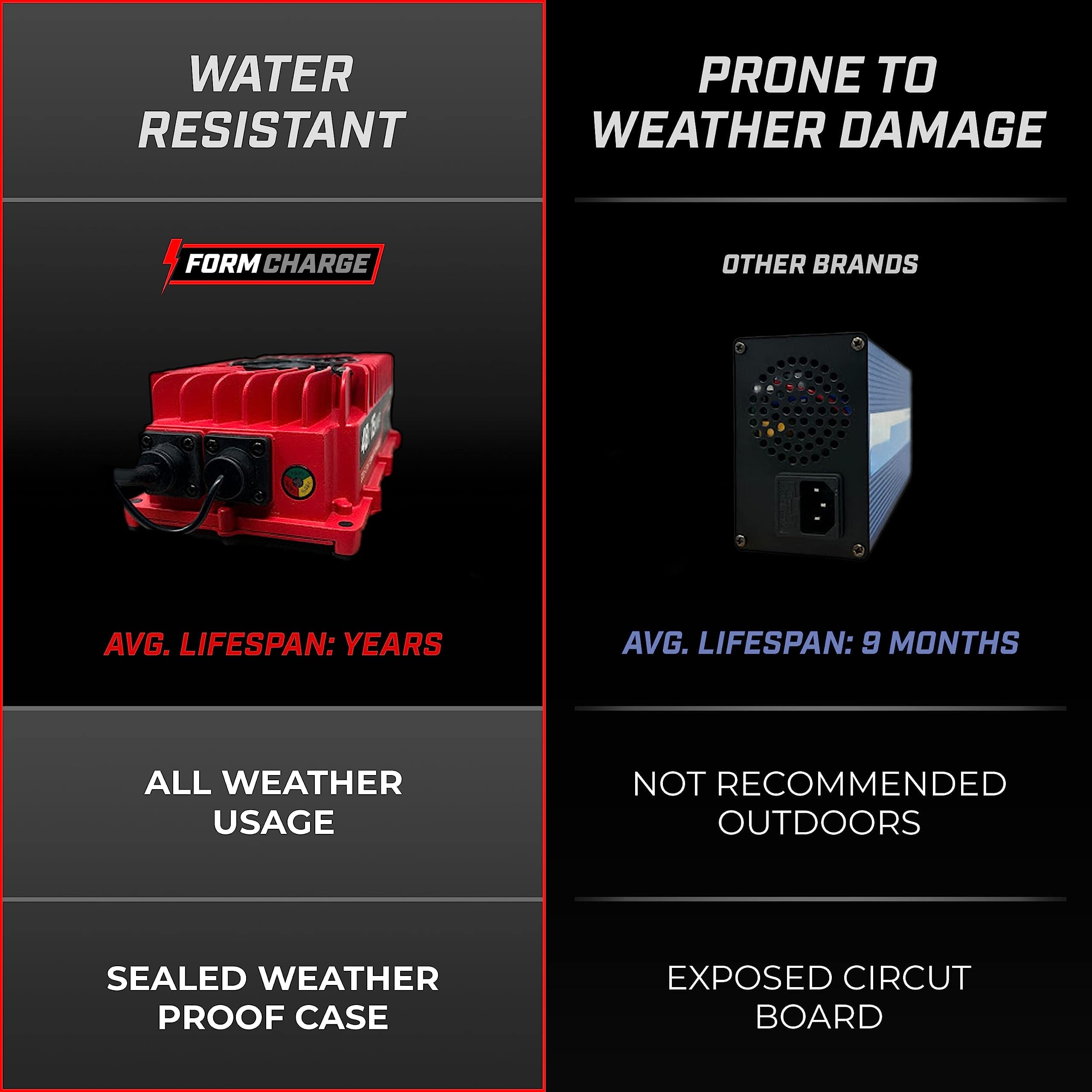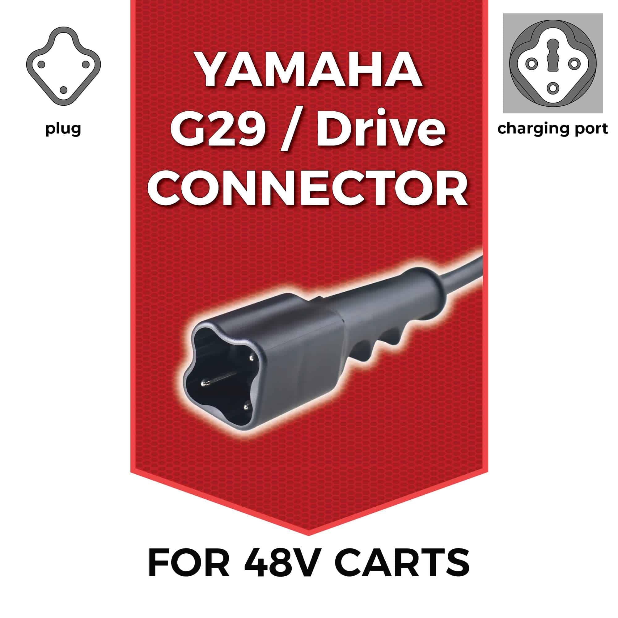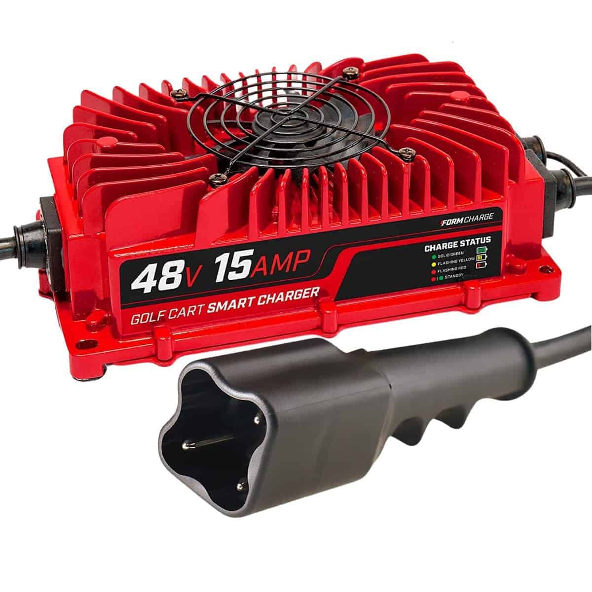 Creamos el cargador de batería FORM como la opción portátil perfecta y ligera para reemplazar tu antiguo cargador voluminoso de carrito de golf. Enchufe de flecha de 3 pines para su uso con carritos de golf Club Cars de 48 voltios. Alcanza hasta 16 pies de alcance, lo que incluye un cable de entrada de CA de 8 pies y un cable de salida de CC de 8 pies. Diseño ligero que pesa 5.5 libras. Tecnología de carga inteligente de 3 etapas que prolonga la vida de tus costosas baterías de plomo-ácido. Compatible con carritos de golf Yamaha G29/Drive de 48V con enchufe de flecha de 3 pines y golf carts Yamaha G29/Drive de 48V desde 2007 en adelante.