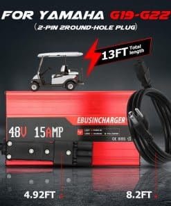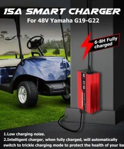 5. Calidad Premium: Nuestro cargador de batería para carro de golf de 48 voltios, específicamente diseñado para modelos Yamaha y certificado con los estándares CE y RoHS, sirve como un compañero indispensable para su carro de golf. Con un sistema de carga inteligente, garantiza una mayor vida útil de la batería. Ofrecemos con confianza una política de devolución de 3 meses y una garantía de fabricante integral de 36 meses contra defectos, respaldando nuestros productos con orgullo.