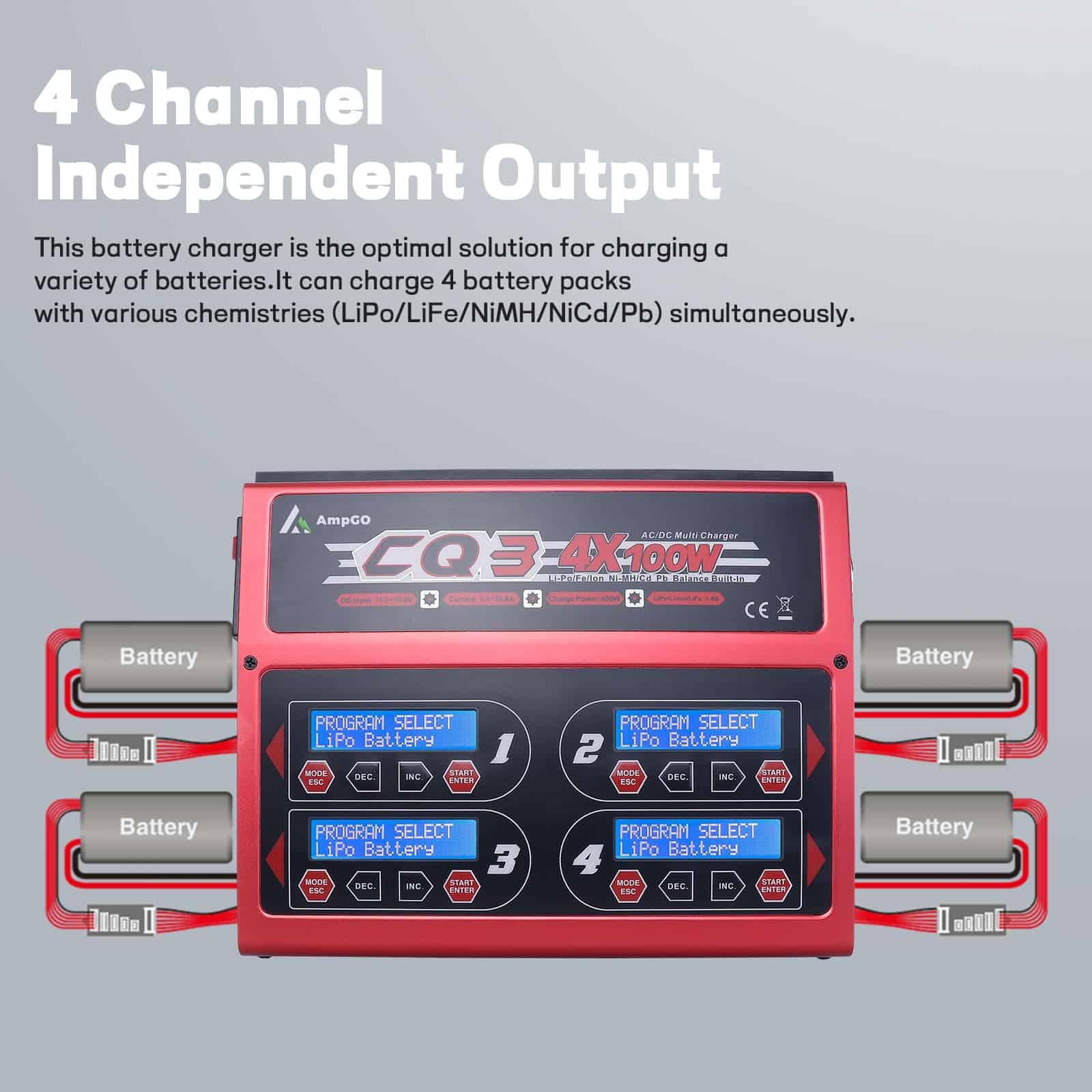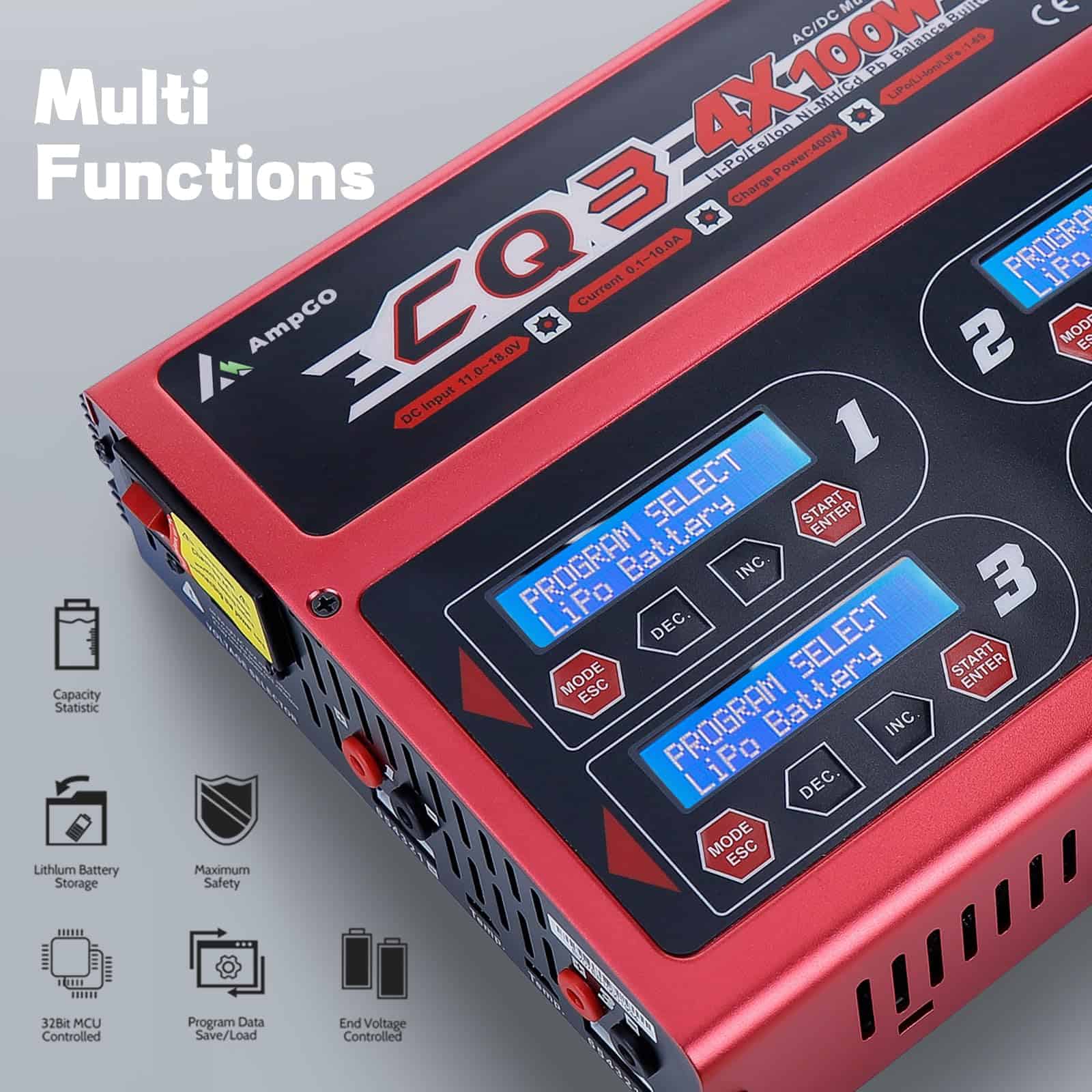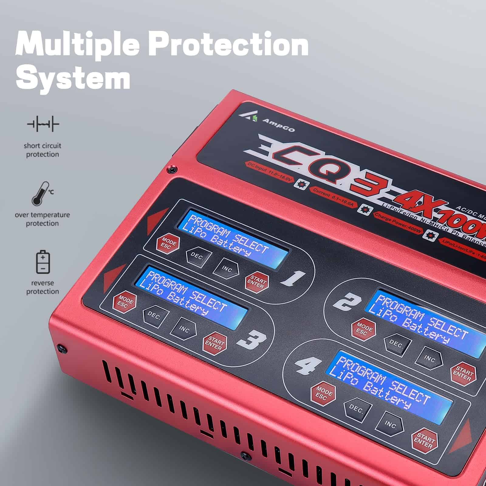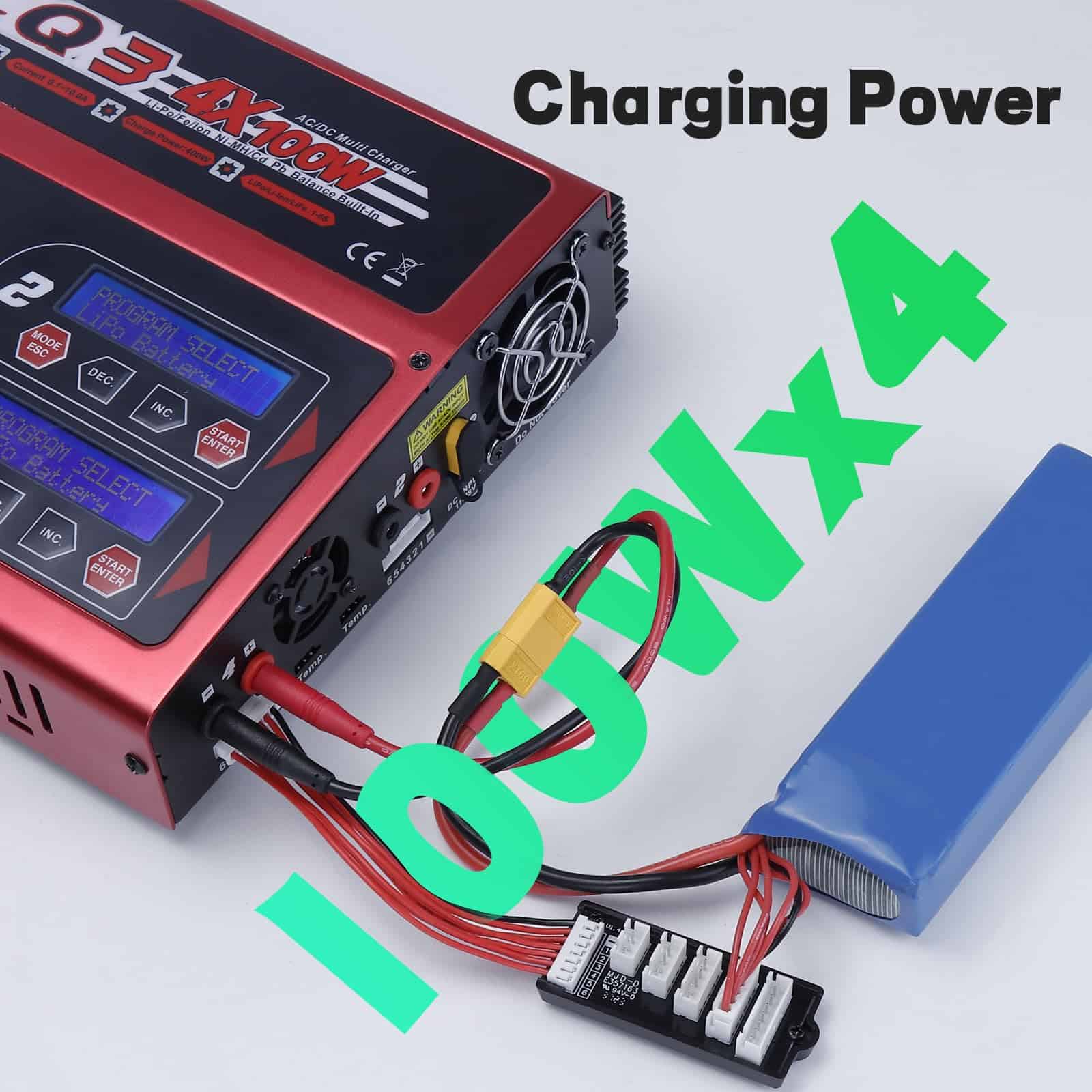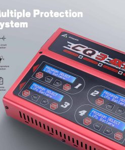 Este potente cargador de batería está diseñado para satisfacer todas las necesidades de carga de tus dispositivos RC. Con una compatibilidad universal de baterías, podrás cargar fácilmente tus coches, barcos, aviones y drones con eficiencia y seguridad. El diseño de carga cuádruple de alta eficiencia te permite cargar hasta cuatro baterías simultáneamente con 100W y 10A por canal, lo que te permite volver a la acción rápidamente. Además, las características multifuncionales de carga, como el equilibrio LIHV y LiPO, la carga rápida y el almacenamiento de datos, te brindan un control total sobre el proceso de carga. Con avanzados protocolos de seguridad integrados, incluyendo protección contra sobrecorriente, sobretensión y sobrecalentamiento, puedes cargar tus baterías con total tranquilidad. El paquete incluye conectores esenciales y una garantía de un año para que puedas disfrutar de tu tiempo de juego sin preocupaciones.