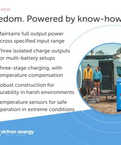 La gama de cargadores de baterías Victron Energy Centaur cuenta con una entrada auto-rango que cubre 90-265VAC 50/60Hz, lo que significa que se pueden utilizar en cualquier parte del mundo. Crucialmente, y a diferencia de muchos otros productos que indican entrada universal, la gama de cargadores de baterías Victron Energy Centaur mantendrá la potencia de salida completa dentro de todo el rango especificado. Otras características incluyen una característica de carga de tres etapas totalmente automática que garantiza que las baterías estén completamente cargadas cada vez y tres salidas de carga aisladas para configuraciones de múltiples baterías para adaptarse a la mayoría de las instalaciones típicas. La gama abarca modelos de 12V y 24V desde 16A hasta 100A.
