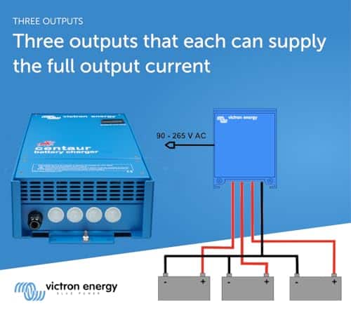 La gama de cargadores de baterías Victron Energy Centaur cuenta con entrada de auto-rango que cubre 90-265VAC 50/60Hz, lo que significa que se pueden utilizar en cualquier parte del mundo. Crucialmente, y a diferencia de muchos otros productos que indican entrada universal, la gama de cargadores de baterías Victron Energy Centaur mantendrá la potencia de salida completa dentro de todo el rango especificado. Otras características incluyen una característica de carga completamente automática de tres etapas que garantiza que las baterías estén completamente cargadas cada vez y tres salidas de carga aisladas para configuraciones de batería múltiple que se adapten a la mayoría de las instalaciones típicas. La gama abarca modelos de 12V y 24V desde 16A hasta 100A.