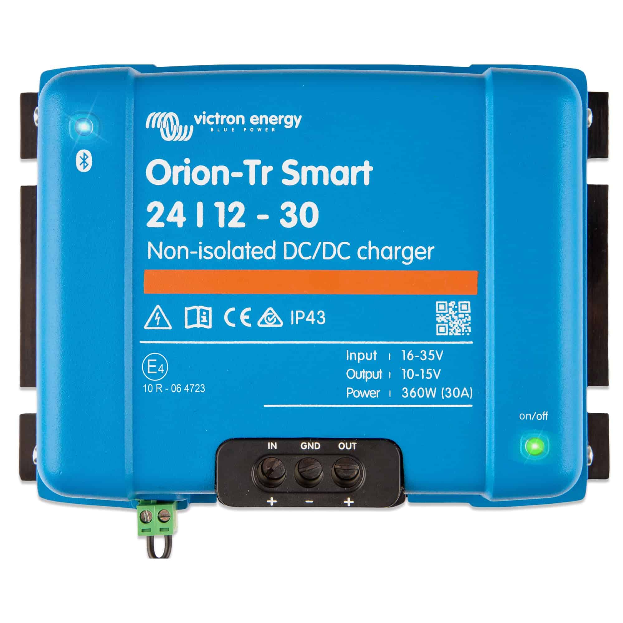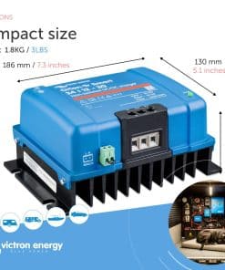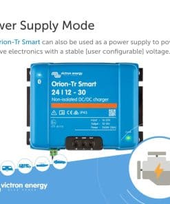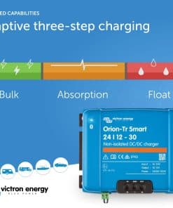 Cargador de batería Victron Energy Orion-Tr Smart DC a DC (Bluetooth) – 24/12 voltios 30 amperios 360 vatios – Cargador de batería para sistemas de doble batería – No aislado. El cargador Orion-Tr Smart DC-DC es un cargador profesional que utiliza tres etapas para cargar eficiente y seguramente tus baterías. Ideal para vehículos o barcos donde el alternador y la batería de arranque se utilizan para cargar la batería de servicio. El cargador DC a DC de Victron es ideal para vehículos o barcos donde el alternador y la batería de arranque se utilizan para cargar la batería de servicio. El cargador DC a DC se puede monitorear y controlar con un smartphone o tablet a través de Bluetooth y la aplicación VictronConnect. Esto te permite ver el estado del cargador y realizar ajustes según sea necesario. La solución de energía flexible del cargador DC a DC es adecuada para baterías de plomo-ácido y de litio, y se pueden conectar unidades múltiples ilimitadas en paralelo para aumentar la potencia de salida. Los terminales de tornillo ofrecen un proceso de instalación conveniente y fácil, eliminando la necesidad de herramientas especializadas.