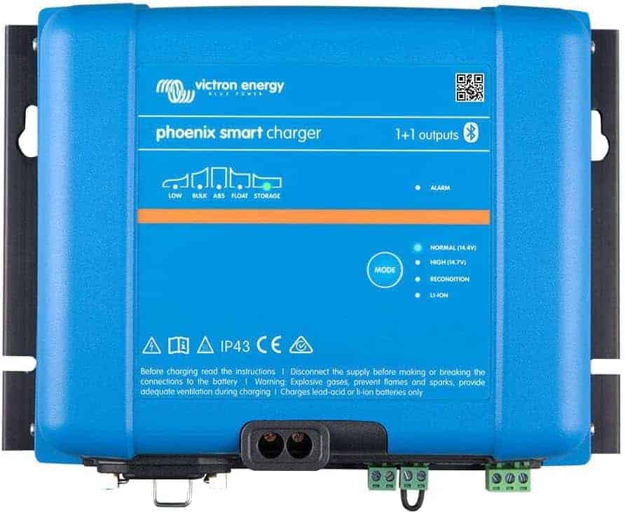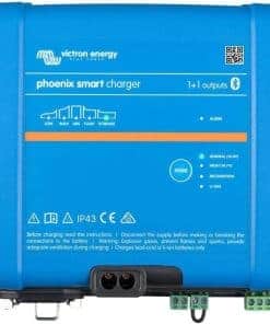 Cargador de Batería Victron Energy Smart IP43 es un cargador inteligente de 2 salidas diseñado para barcos. Tiene dos salidas para cargar 2 bancos de baterías, con la segunda salida limitada a aproximadamente 4 amperios para cargar una batería de arranque. La función Bluetooth integrada le permite monitorear, controlar, actualizar y sincronizar el cargador de forma remota. Además, cuenta con compensación automática de voltaje para garantizar un rendimiento óptimo en todo momento.