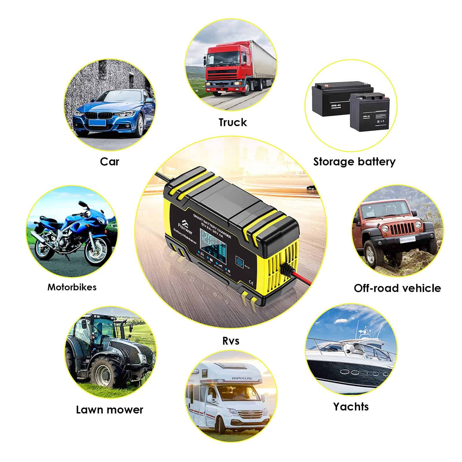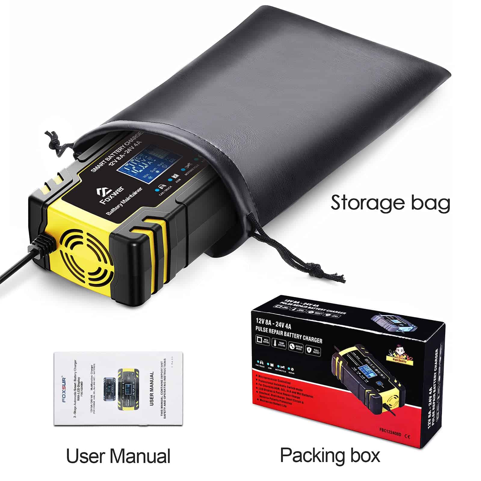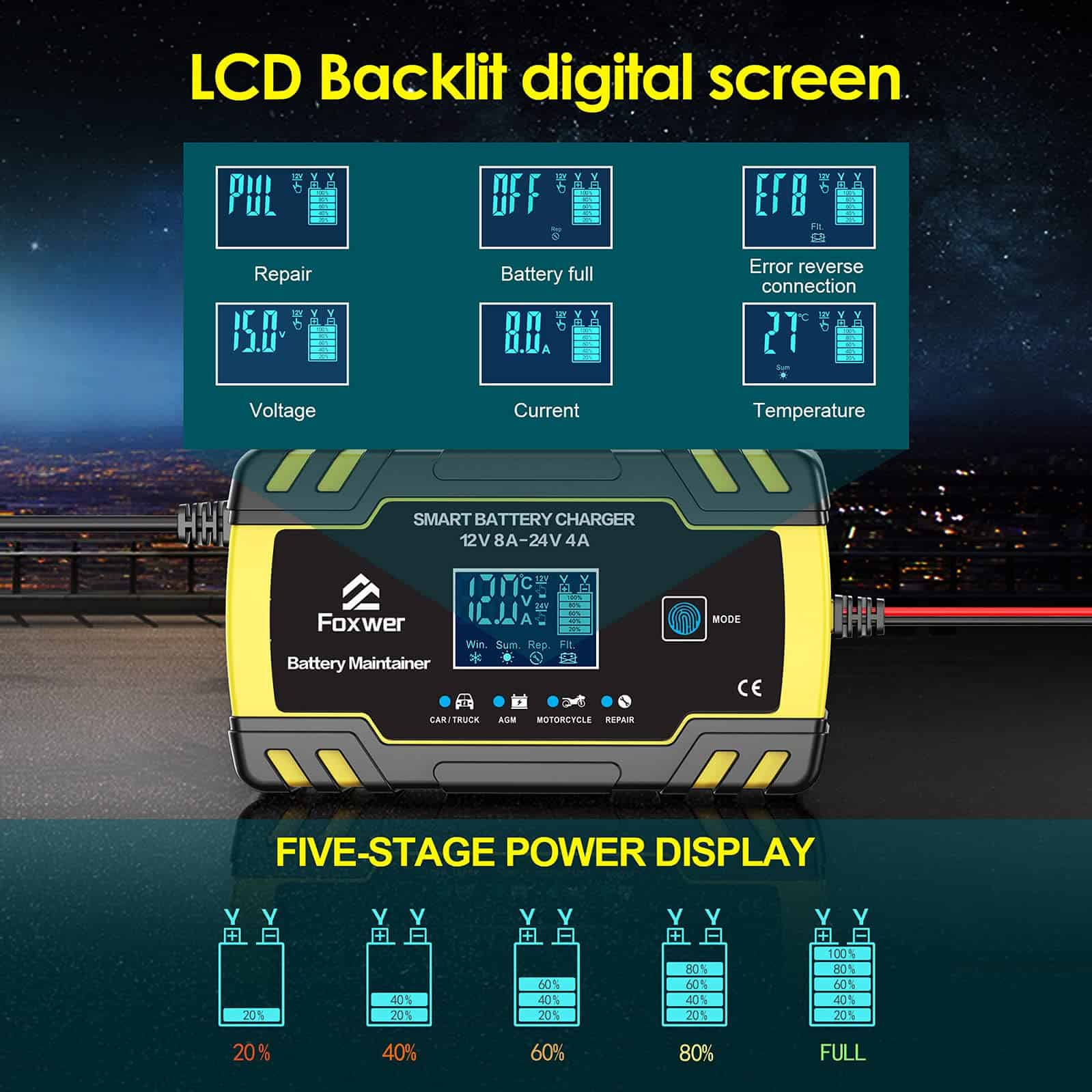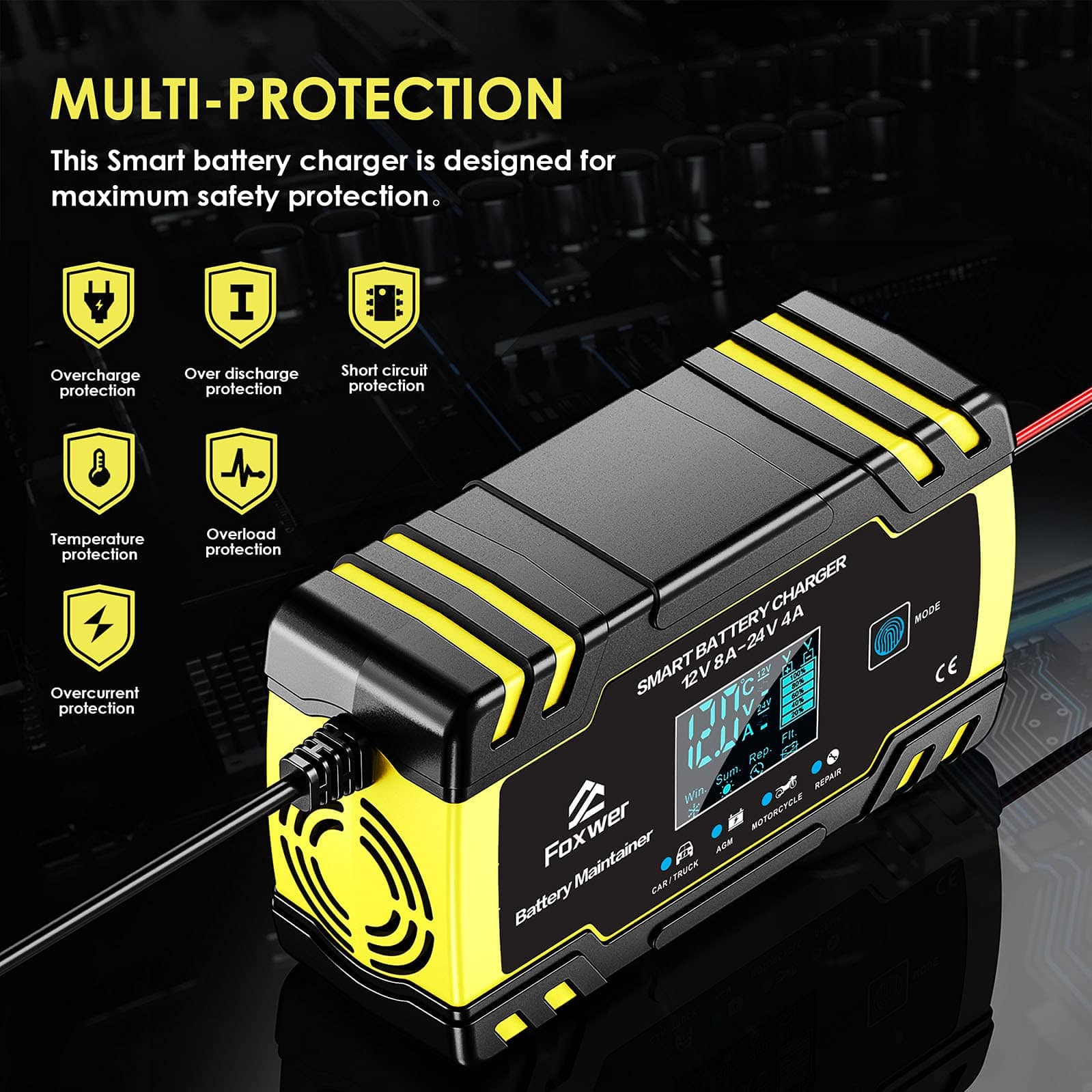 Cargador de Batería y Mantenedor FOXWER 12V8A 24V4A,