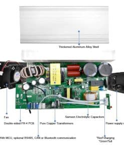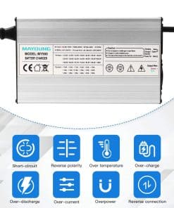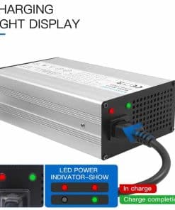 Cargador de batería YEWY 29.2V 25A para batería LiFePO4 de 24V. Este cargador de alta calidad cuenta con una corriente constante de 25A y un voltaje constante alrededor de 29.2V, ideal para cargar rápidamente baterías de Litio de Fosfato de Hierro de 29.2V/24V. Con protección contra sobrecargas, sobre voltajes, cortocircuitos y polaridad inversa, garantiza una carga completa y evita la sobrecarga. Además, cuenta con un ventilador incorporado para mantenerse frío durante el uso.