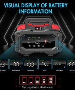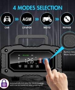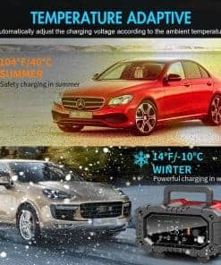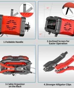 El cargador de batería para automóvil cuenta con modos de invierno y verano con control inteligente para adaptarse a los cambios de temperatura y ajustar la velocidad de carga, previniendo la descarga de la batería. Ofrece múltiples protecciones, incluyendo protección contra polaridad inversa, un sistema de enfriamiento, protección contra sobrecorriente, materiales ignífugos, protección contra sobrecarga y cortocircuito. Estas características garantizan una carga segura, ideal para mantener las baterías durante el invierno o las vacaciones. Además, cuenta con un modo avanzado de REPARACIÓN de batería para ayudar a recuperar baterías viejas/inactivas y extender su vida útil. La tecnología de pulso de alta y baja frecuencia tiene buenos efectos de reparación y activación. El cargador cuenta con una pantalla LCD extra grande que muestra claramente el estado de carga de la batería, voltaje de carga, temperatura interna, modo de verano, modo de invierno, etc. Este cargador portátil de batería para automóvil tiene protección contra sobrecarga, sobre corriente, un ventilador de enfriamiento incorporado, protección contra sobrecalentamiento, protección contra polaridad inversa, protección contra cortocircuitos, contacto sin chispas, etc., asegurando un proceso de carga seguro y eficiente mientras se extiende la vida útil de la batería de tu vehículo.