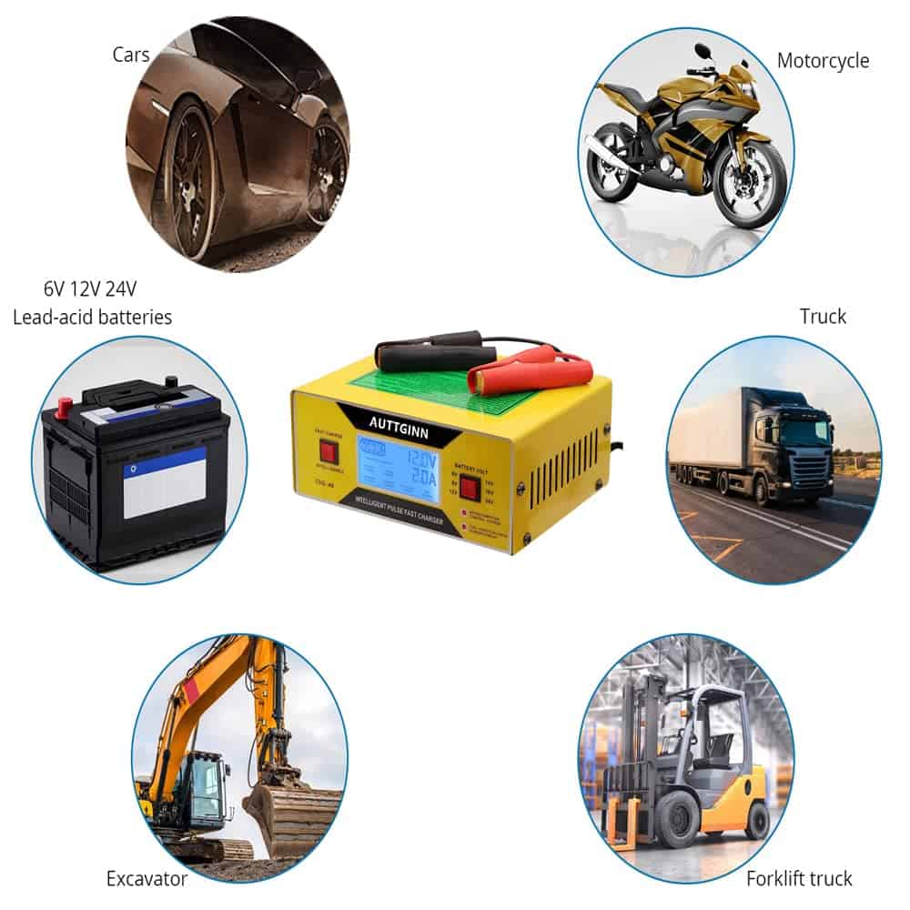 4. Variedad de baterías: El cargador de baterías de 6 voltios puede cargar y mantener todo tipo de baterías de plomo-ácido de 6/8/12/14/24V, carga para baterías AGM, GEL y STD en RV, vehículos especiales, coches antiguos y clásicos, motocicletas, furgonetas, carritos de golf, cortadoras de césped, ATV, motos de nieve, etc. No incluye baterías de litio.
