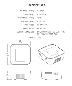Tipo de Batería Compatible: LiFe, Lilon, LiPo, LiHv 1~8S; ULiHv 1-7S; Pb 1-12S: NiMH/Cd 1-16S
