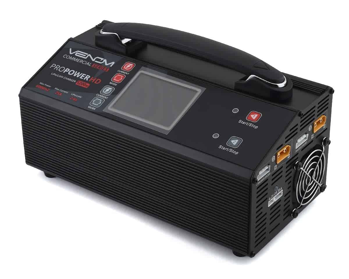 El cargador Venom Commercial Series Pro Power HD es una adición revolucionaria al mundo de los entusiastas de RC. Este cargador potente y elegante elimina la complejidad típicamente asociada con los cargadores, ofreciendo programación simplificada para una operación sin complicaciones. Sus características destacadas incluyen la capacidad de cargar simultáneamente dos baterías de 2S a 6S de LiPo y LiHV con dos puertos de carga máxima de 600W / 25A, asegurando el doble de potencia y el doble de diversión. Para baterías más pequeñas, el cargador proporciona dos puertos de carga de batería de radio de 10W, 0.8A, que admiten baterías de 2S y 3S de hasta 5000mAh. Una pantalla LCD fácil de usar te mantiene informado del estado de carga y la capacidad de la batería, mientras que un modo de almacenamiento prolonga la vida útil de la batería. Actualiza tu experiencia de RC con el cargador Venom Commercial Series Pro Power HD, diseñado para máxima conveniencia, potencia y control en tus aventuras de carreras, vuelo y navegación.