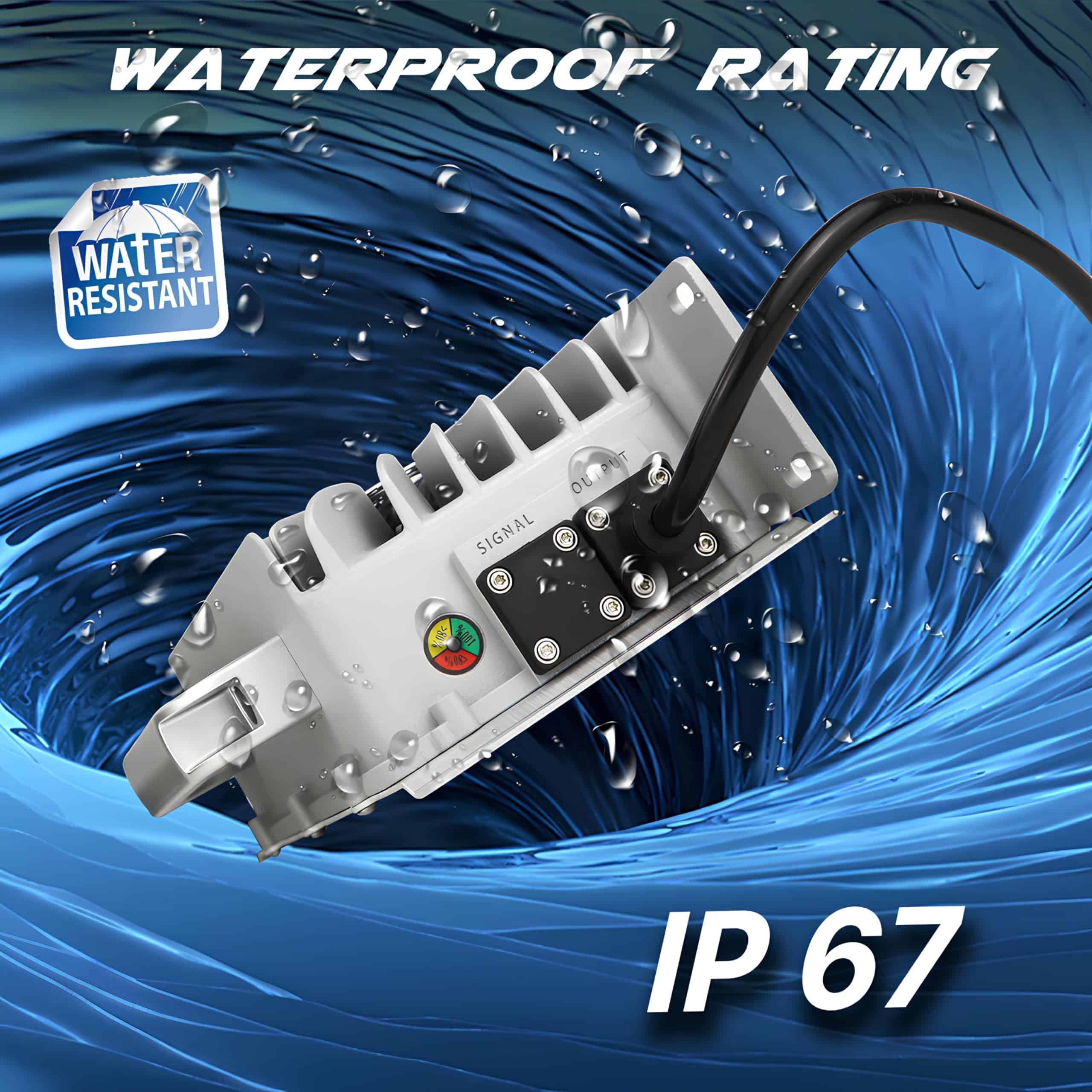 1. Impermeable: Cargador de alta calidad con clasificación IP67. Puede bloquear cualquier choque de agua. Puede funcionar durante más de 30 minutos a una profundidad de un metro en el agua. El diseño único previene daños por impactos y se adapta a cualquier superficie de carretera irregular.