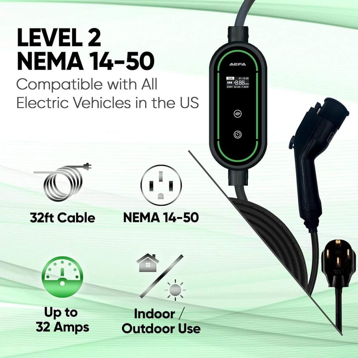 Cargador de coche eléctrico AEFA Nivel 2 – NEMA 14-50 con