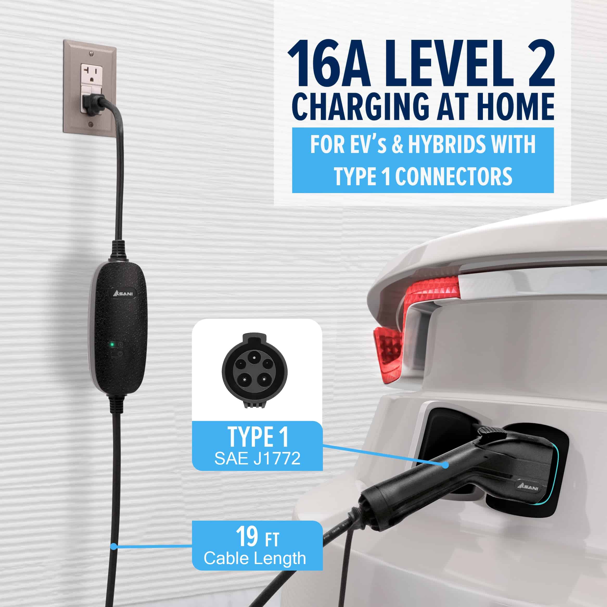 Utilizando el conector Type 1 (J1772) más ampliamente adoptado, este cargador es compatible con muchos de los EVs e híbridos más comunes en el mercado, incluyendo modelos populares de Ford, GM, Nissan, Audi, VW, Kia, Honda, BMW, Toyota, Hyundai, Ford y muchos más.
