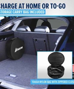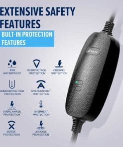 Nuestro cargador de coche eléctrico es tu compañero definitivo para las necesidades de carga sobre la marcha. Fabricado con material duradero y antideslizante y con una clasificación impermeable IP66, está diseñado para resistir las condiciones exteriores. Con un conveniente diseño de enchufar y listo y un generoso cable de 19 pies, la carga se convierte en una brisa. Las luces indicadoras LED aseguran que estés siempre informado, mientras que los accesorios incluidos mejoran la usabilidad para una experiencia fluida.