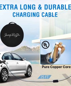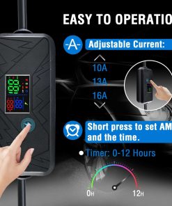 Cargador EV portátil Jump Booster que permite una carga más rápida y eficiente para vehículos con entrada tipo 1 (SAE J1722). Puede seleccionar una corriente ajustable de 10A/13A/16A y configurar un temporizador para cortar la electricidad automáticamente cuando la batería esté llena. Con pantalla LED para una fácil visualización de los datos. Además, cuenta con 8 protecciones de seguridad como Protección contra Fugas, Protección contra Sobretensión, Protección contra Sobrecarga y Protección contra Cortocircuitos. Incluye bolsa de transporte y cable de 25 pies para mayor comodidad.