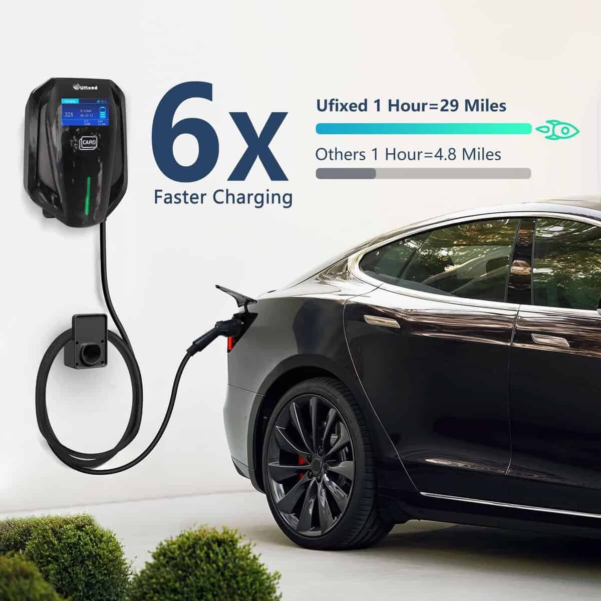 5. Compatible con todos los EVs americanos. Incluye adaptador J1772 a Tesla, compatible con los modelos 3/S/X/Y, proporcionando carga rápida para todos los modelos de EV en EE. UU.