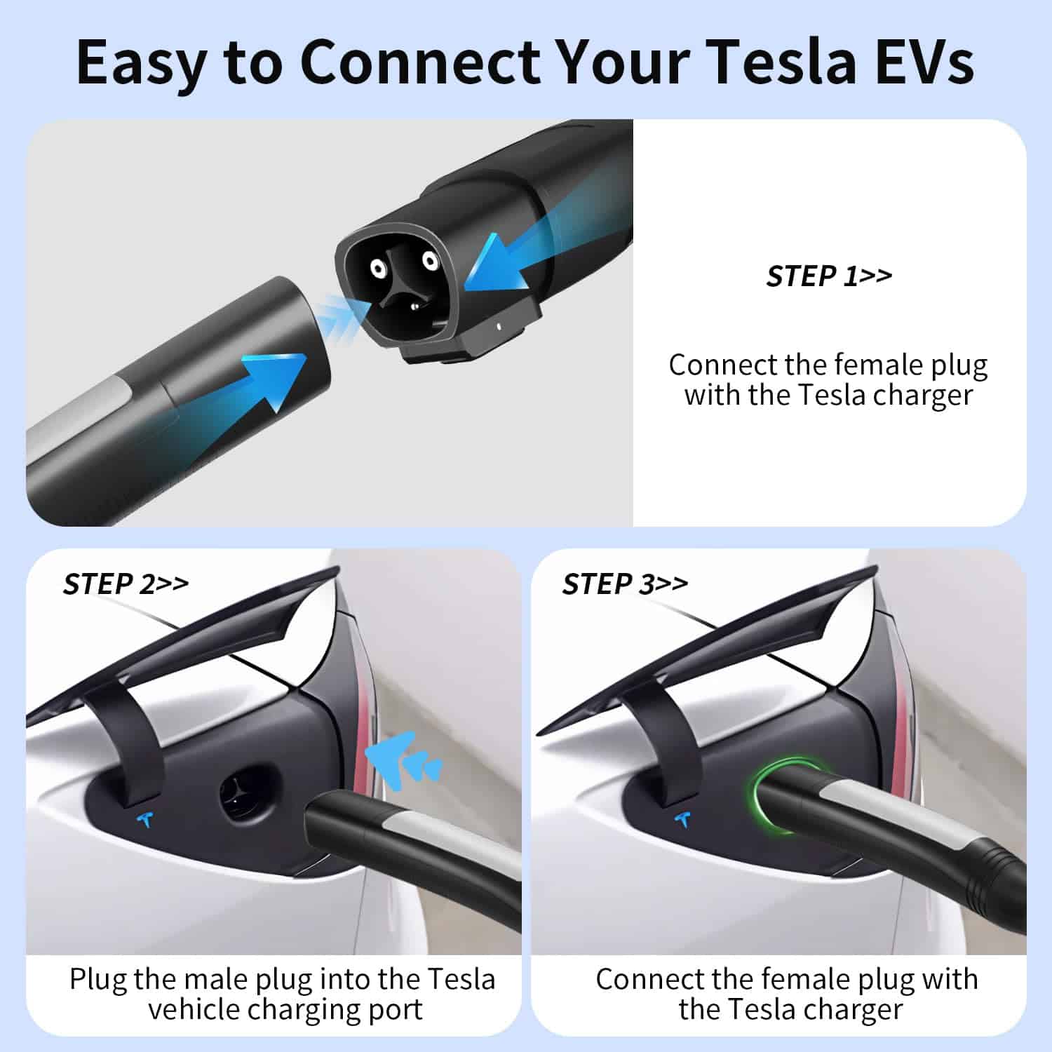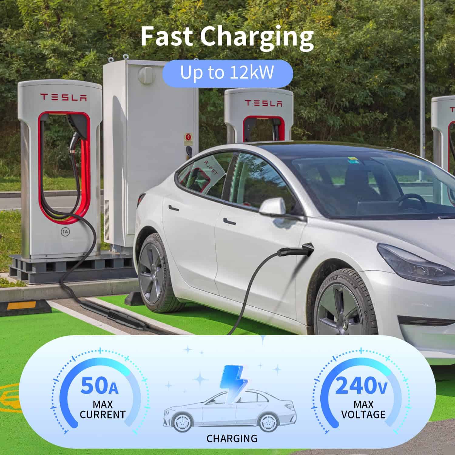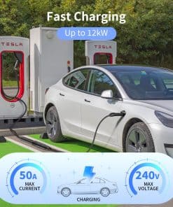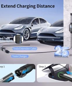 El cable de extensión Tesla de 25 pies es compatible con Tesla Model 3, Y, X, S, para carga de 50A 240V. Materiales de alta calidad, arquitectura y diseño garantizan un rendimiento duradero, seguridad y carga eficiente. Permite una distancia de carga sin preocupaciones, lo que facilita la colocación de su automóvil Tesla para una carga fácil. Configuración plug and play con conectores NACS para una configuración sencilla y fácil de usar. Diseñado para soportar la compatibilidad de todos los sistemas de carga de vehículos Tesla.