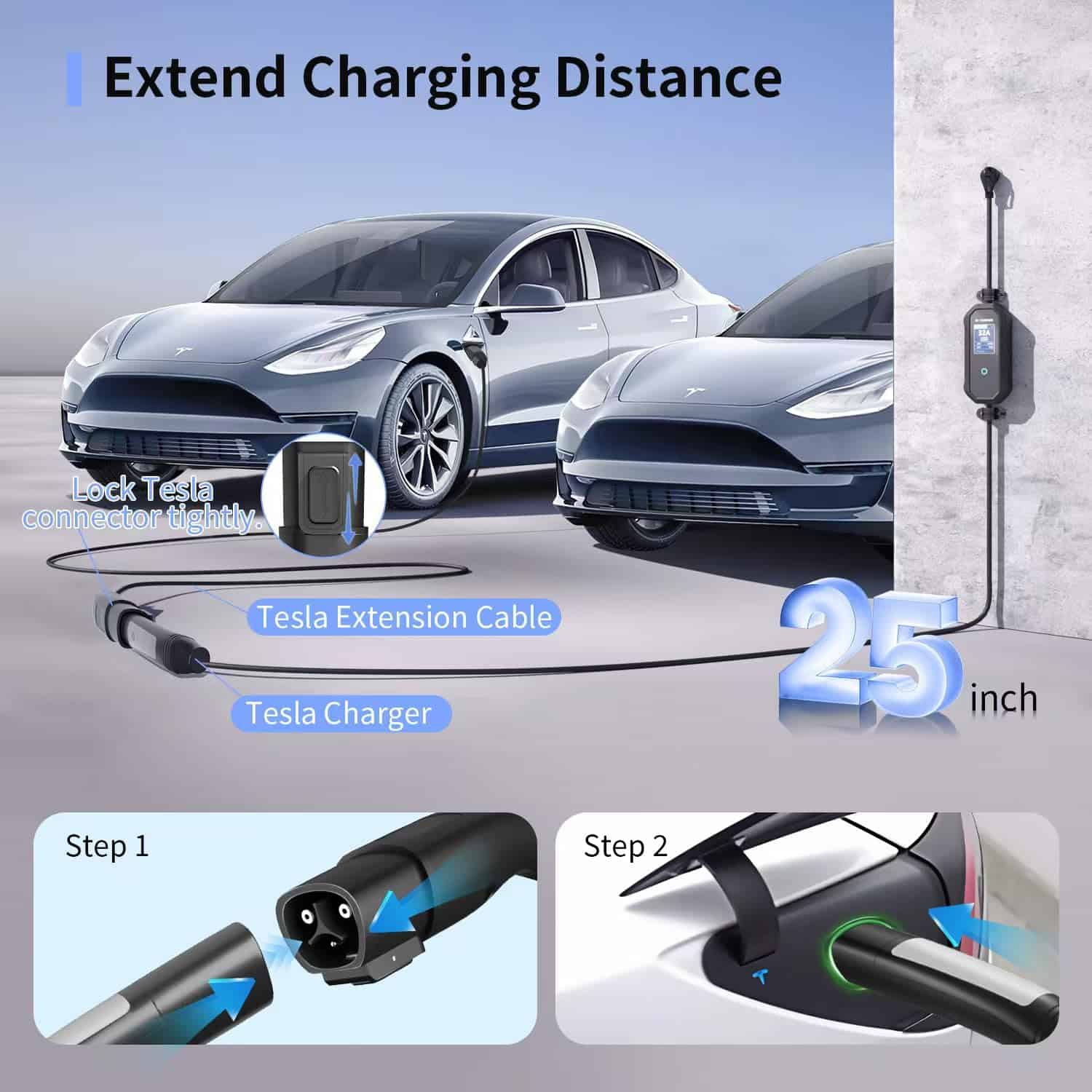Cargador de Extensión Tesla RYCHEENI de 25FT con Conector
