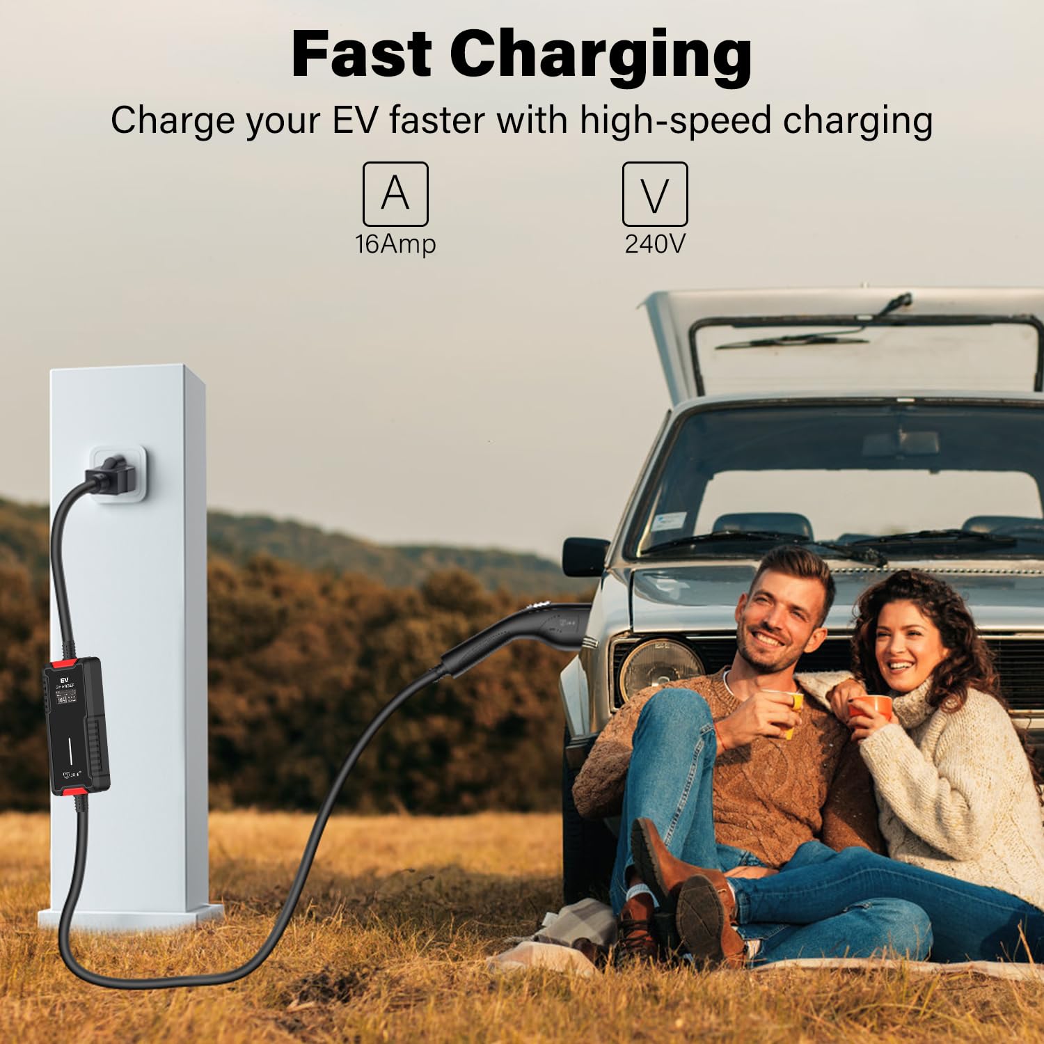 4. Conveniente y Flexible: incluido con una bolsa de almacenamiento gratuita para un transporte fácil, este cargador soporta la carga sobre la marcha independientemente de las estaciones fijas; la longitud del cable de 25 pies satisface las necesidades de carga diarias de la mayoría de las familias, garantizando flexibilidad y conveniencia dondequiera que vaya tu vehículo.