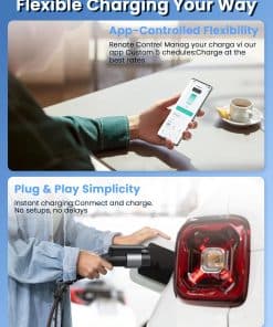 2. Cable de 25 pies para instalación flexible: El cable de 25 pies proporciona longitud suficiente para una instalación versátil, ya sea que esté cargando su vehículo en un garaje, en la entrada o en un espacio de estacionamiento. Esta flexibilidad garantiza que pueda conectar fácilmente su VE a la estación de carga, independientemente de dónde esté estacionado.
