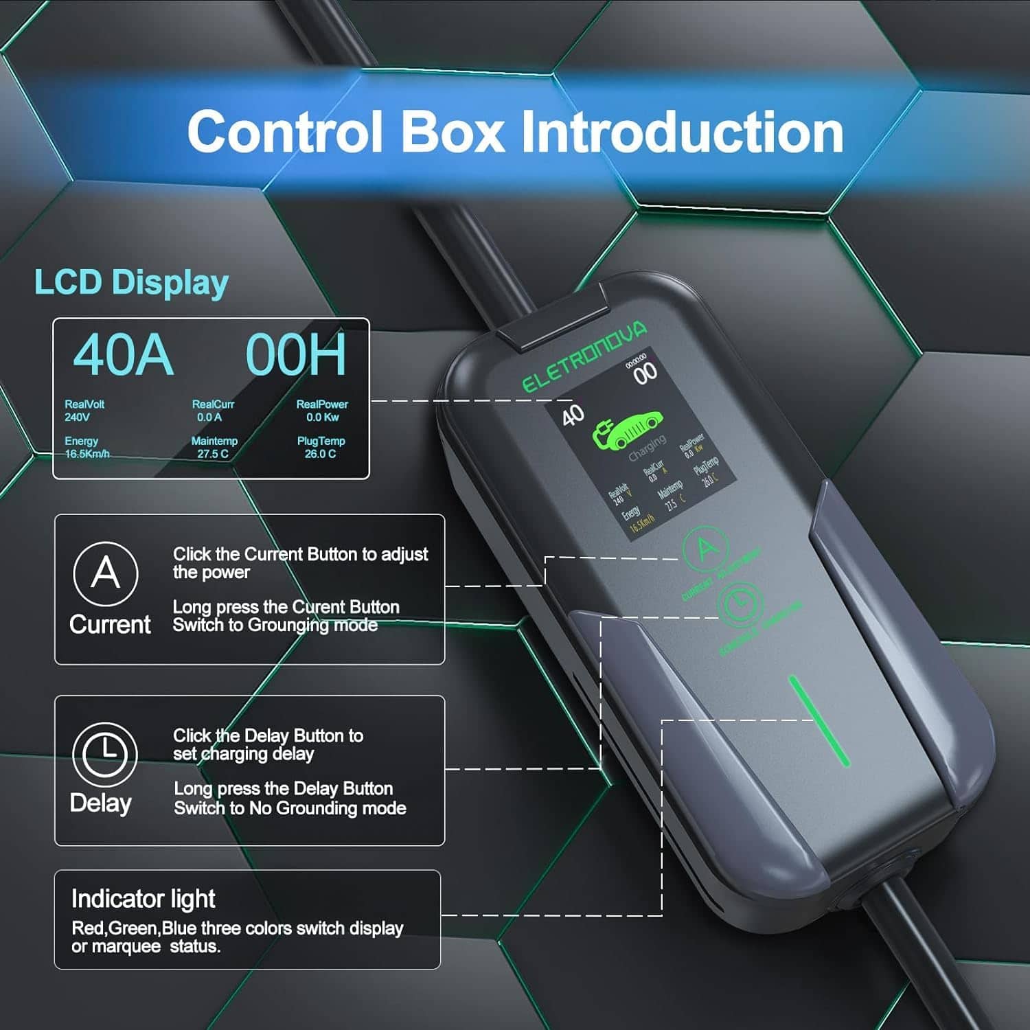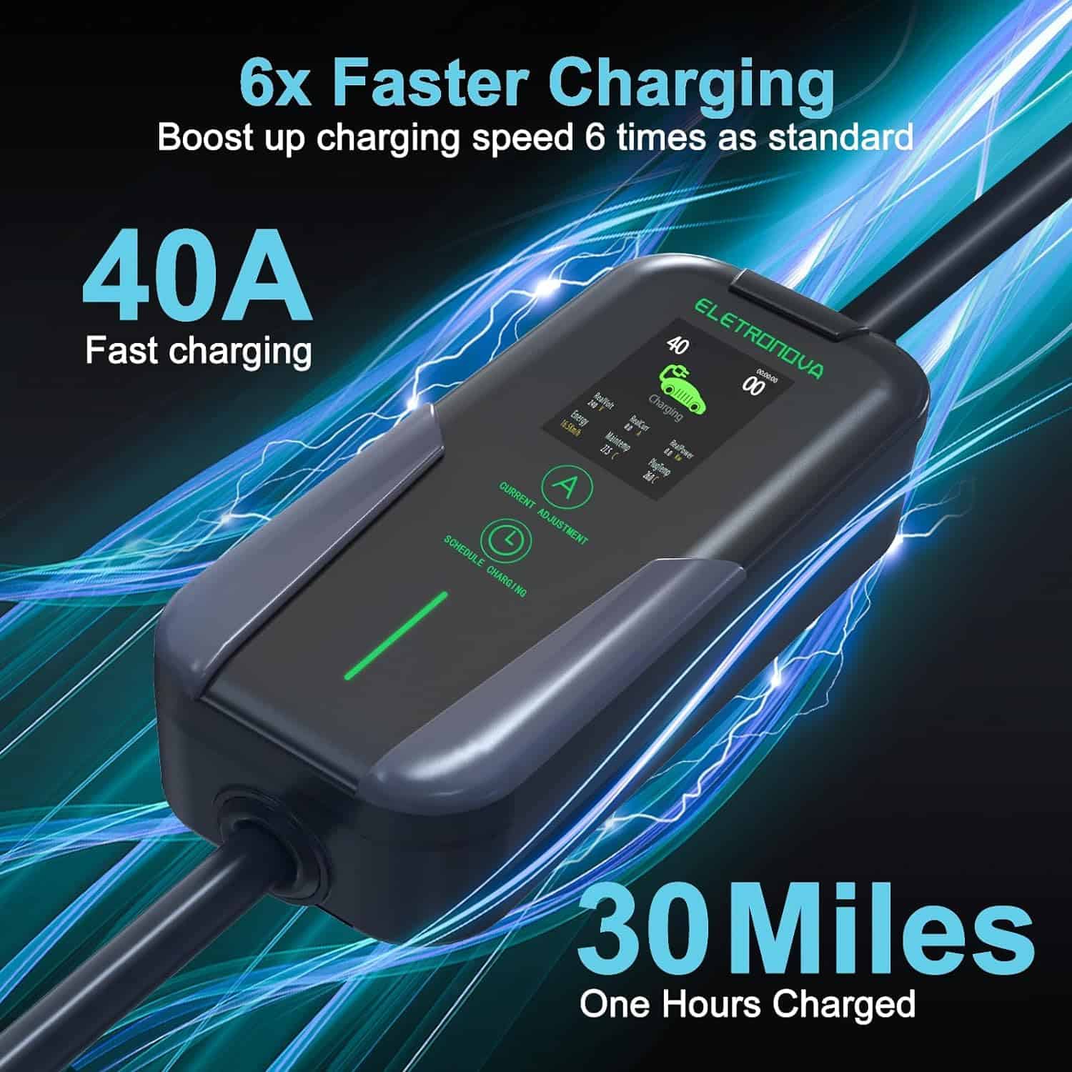 Estaciones de Carga Portátiles de Nivel 2 – Los cargadores de vehículos eléctricos Eletronova NEMA 14-50 para el hogar de Nivel 2 cargarían su automóvil eléctrico rápidamente con 40 amperios y una potencia de salida de 9.6 KW. Es un cargador EV portátil de 240V para el hogar o uso continuo, mencione que solo funciona con un enchufe NEMA 14-50.