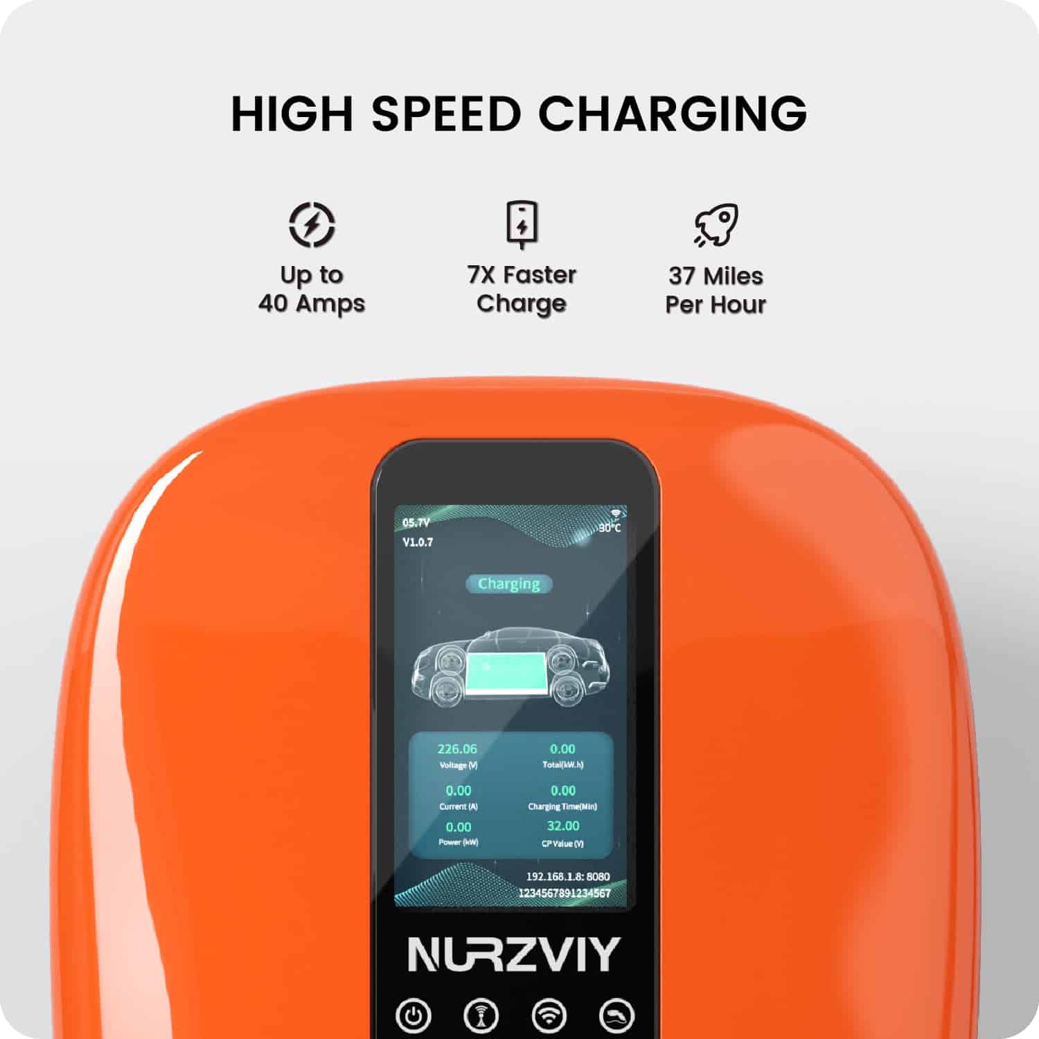 1. RENDIMIENTO POTENTE: Maximice el potencial de carga de su vehículo eléctrico con el Cargador de Nivel 2 para Vehículos Eléctricos en Casa de 40 Amperios de NURZVIY. Experimente una impresionante corriente de trabajo de hasta 40A y un versátil rango de voltaje de trabajo de CA 90~260V. Obtenga 30 millas adicionales por hora de carga, gracias a la sólida potencia nominal de 9.6kW. La carga rápida y eficiente está garantizada, asegurando que su vehículo eléctrico esté siempre listo para la carretera.