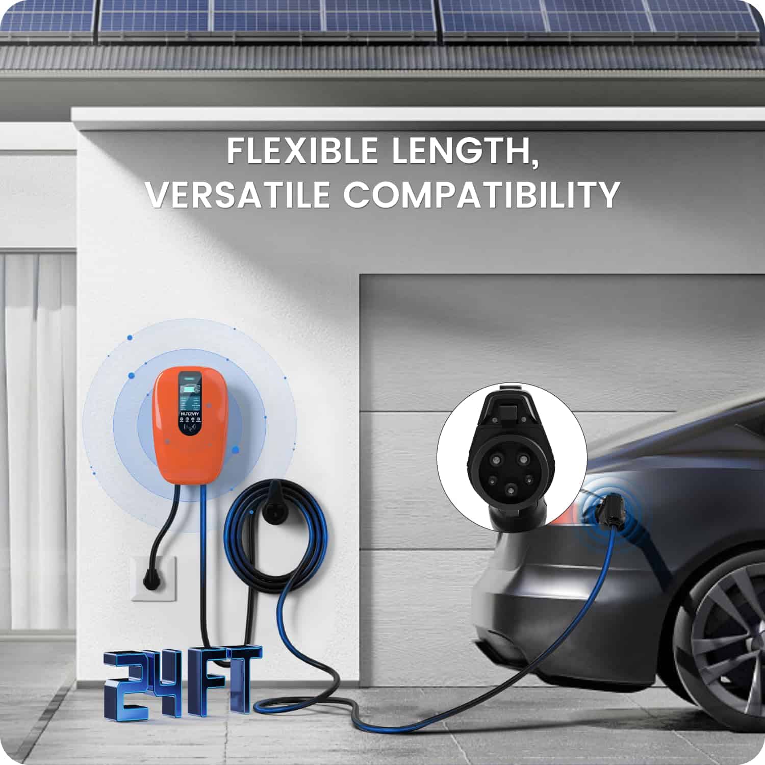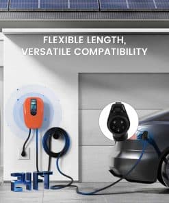 3. CONECTOR VERSÁTIL: Disfrute de una compatibilidad perfecta con varios vehículos eléctricos, incluidos Kia, Nissan, y más, a través de nuestro conector J1772. El cable NEMA 14-50 se extiende hasta 23.6 pies (7.2 m), brindando flexibilidad y comodidad. Cargue su vehículo sin problemas, sin importar la marca o el modelo, y aproveche la versatilidad que nuestra estación de carga ofrece.