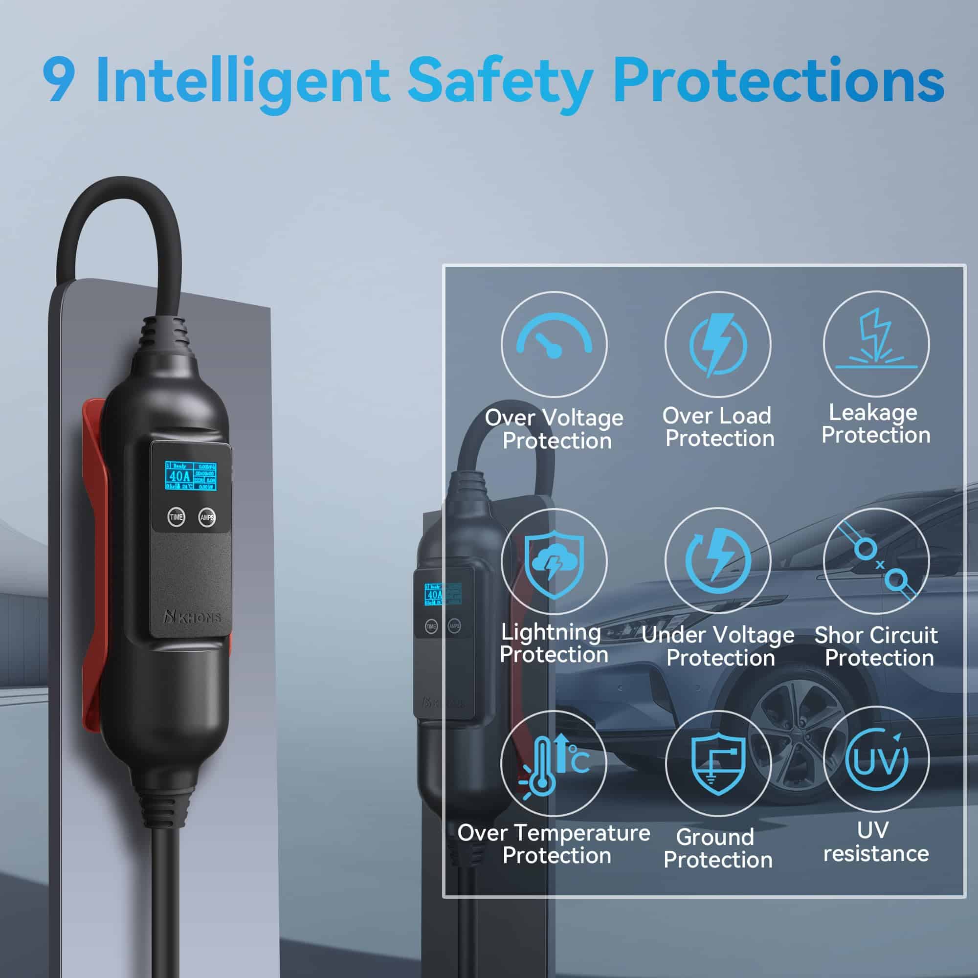 Cargador de Nivel 2 para Vehículos Eléctricos KHONS 40Amp