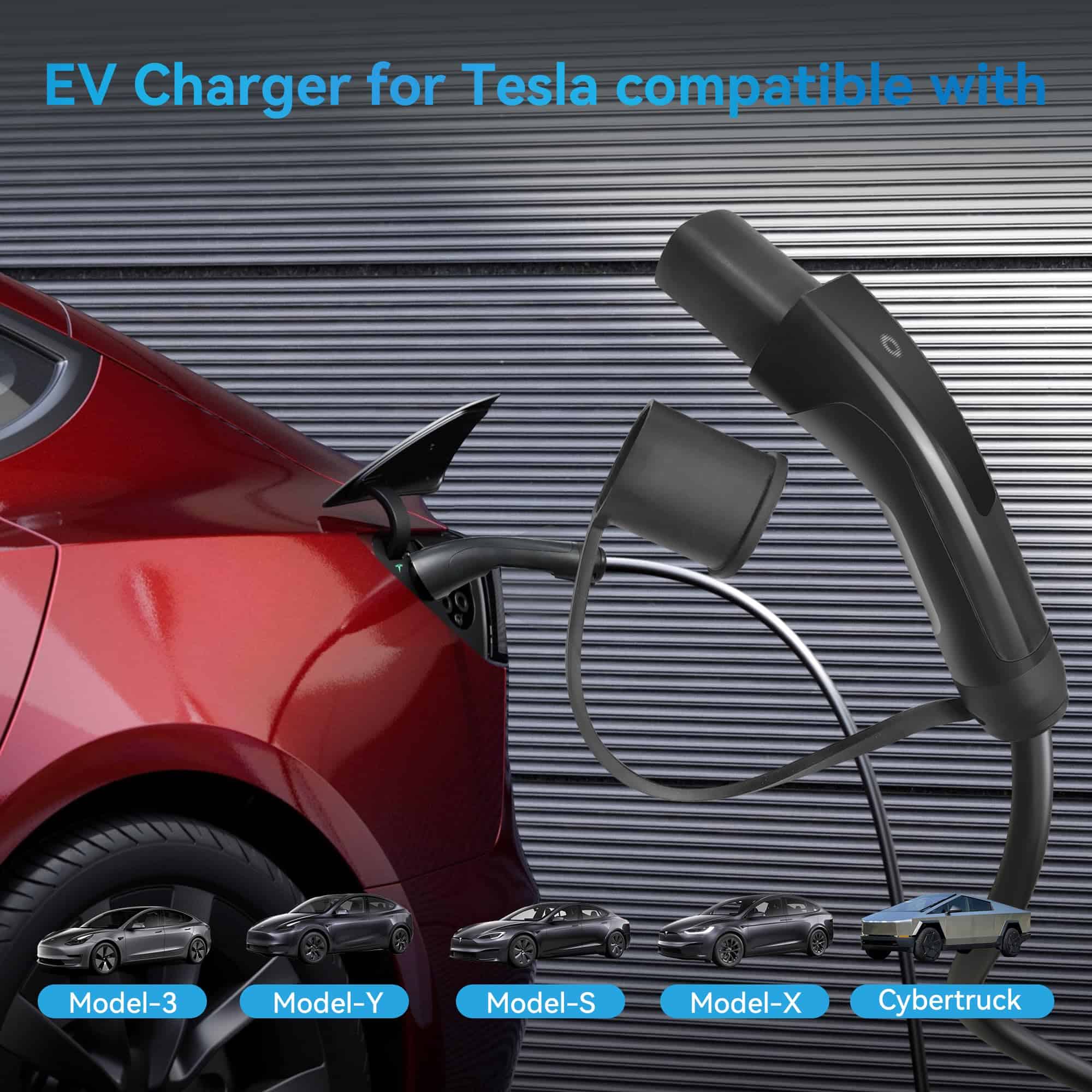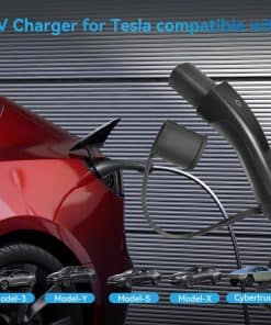 4. Amplia Compatibilidad: Equipado con enchufe Tesla que es compatible con los modelos de automóviles Tesla Y/X/3/S/Cybertruck en el mercado; el cable de carga extra largo de 16FT es perfecto para cargar al aire libre o en interiores, no necesita preocuparse por la carga debido a la longitud insuficiente del cable de alimentación cuando lo está utilizando. Es tanto una estación de carga para vehículos eléctricos como un cargador de EV móvil.