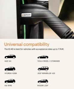 El cargador de vehículo eléctrico IQ 40 con cable de 25 pies y Wi-Fi habilitado es una solución eficiente y conveniente para cargar tu auto eléctrico en casa. Con la capacidad de configurar horarios de carga y recibir recordatorios de tarifas fuera de las horas pico a través de la aplicación Enphase, puedes optimizar tu consumo de energía y ahorrar dinero en tus facturas de electricidad. Además, al combinarlo con un Sistema de Energía Enphase para carga solar, puedes aprovechar al máximo la energía limpia y renovable. La instalación del cargador IQ 40 es fácil y rápida con un electricista con licencia, y con una garantía limitada de 5 años, puedes disfrutar de la tranquilidad de saber que tu sistema de carga está respaldado por un fabricante confiable. Diseñado para soportar un uso intenso en diversas condiciones climáticas, este cargador de nivel 2 certificado por ENERGY STAR ofrece una carga rápida y eficiente para tu vehículo eléctrico. Con una velocidad de carga de hasta 31 millas por hora, dependiendo de tu VE o híbrido enchufable, este cargador IQ 40 de 32 amperios proporciona la potencia necesaria para mantener tu VE listo para la carretera. Equipado con un conector J1772 universalmente compatible, este cargador es adecuado para una amplia gama de vehículos eléctricos y híbridos enchufables con tasas de aceptación de hasta 7.7kW. Además, al instalar el cargador en tu hogar, puedes calificar para créditos fiscales y reembolsos federales y locales, lo que te permite ahorrar aún más en la carga de tu VE. Con su diseño duradero y certificación de seguridad UL 2594, el cargador de vehículo eléctrico IQ 40 es la opción ideal para una carga conveniente y segura en casa.