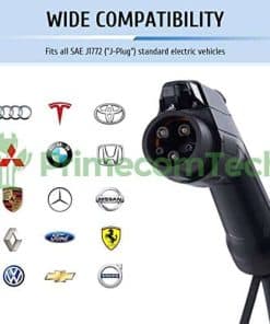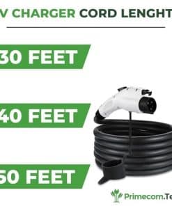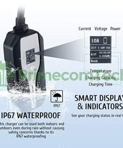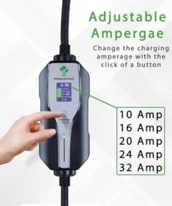 Gracias a esta característica de ajuste de amperaje, puede utilizar su toma de corriente de secadora de ropa existente sin incurrir en costos de instalación y configuración costosos. Hasta 6 veces más rápido que su cargador de 110v. Potencia de 32 amperios, 220 voltios, 7.6 kilovatios de clasificación de potencia. Funciona con todos los EVs y PHEVs de marca: Vehículos Híbridos Enchufables. Es compatible con todas las marcas de autos eléctricos como TESLA, BOLT, VOLT, LEAF, FIAT, BMW, FOCUS, PRIUS, e-Golf, RAV4, Mercedes, HONDA y muchas más. Disponible en longitudes de cable de 30, 40 y 50 pies y 11 tipos diferentes de tomas NEMA como NEMA 10-30, 14-30, 14-50, 10-50, 6-50, 6-20, etc. Se apaga automáticamente cuando se completa la carga. Calificado IP56 para uso en exteriores: Resistente a la intemperie: puede funcionar bajo LLUVIA POLVO SOL, etc.