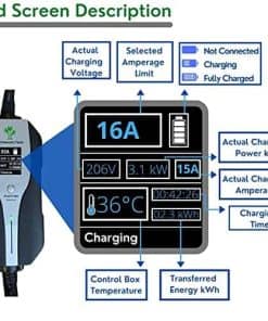 Nuestro cargador cuenta con una pantalla de visualización en tiempo real que muestra información relevante como amperaje de carga en tiempo real, voltaje de carga actual, consumo total de kilovatios, temperatura actual y otros valores informativos. Los cargadores Primecom Level 2 han pasado pruebas rigurosas para garantizar medidas de calidad y seguridad. Certificación de seguridad y equipo de productos alemán T V, certificaciones CE, junto con otras 12 características de seguridad incorporadas. Chip inteligente que proporciona automáticamente el amperaje solicitado por su EV. Compatible con todas las marcas de autos eléctricos.