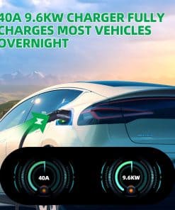 La carga rápida Nivel 2 de 40 Amperios garantiza que su vehículo se cargue completamente durante la noche, con una velocidad de carga de hasta 36 millas por hora. Diseñado con la seguridad en mente, este cargador cuenta con cables gruesos, protecciones térmicas, protecciones eléctricas, resistencia al agua IP65 y conectores de alta calidad.