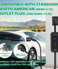 Compatibilidad con Siemens y Square D 50A GFCI sin falsos disparos, este cargador es la elección segura y confiable para cargar su vehículo eléctrico de forma rápida y conveniente.
