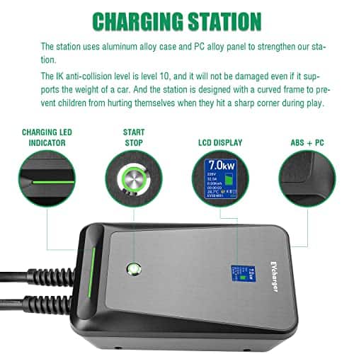 Nota: No todos los vehículos soportan la función de retraso. Un pequeño número de vehículos no son compatibles con ella. No es el cargador, sino que algunos vehículos no son compatibles con la función de retraso. VELOCIDADES DE CARGA MÁS RÁPIDAS Es un cargador de coche portátil y funciona tanto en interiores como en exteriores con TODOS los coches eléctricos. Potencias de 6/8/10/13/16A ideales para vehículos eléctricos enchufables. La Estación de Carga de Vehículo Eléctrico de Alto Poder LEFANEV, Nivel 2, carga su coche hasta 3 veces más rápido que el cable que venía con su vehículo eléctrico. CERTIFICADO DE SEGURIDAD Soldadura de máquina muy precisa, línea de la placa de circuito interno ordenada y limpia, hay mucho espacio para modificación, la línea está fijada con tornillos y tiene un mejor efecto de disipación de calor. CONVENIENTE El diseño de la estación adopta un marco curvo para evitar que los niños se lastimen al golpear una esquina afilada durante el juego y se puede utilizar en casa. Con un RCD de Tipo A, nuestro producto puede equilibrar perfectamente las corrientes de los electrodomésticos del hogar para garantizar una corriente constante mientras el VE está cargando, evitando posibles problemas de seguridad. CONFIABLE Carcasa NEMA 4 completamente sellada para instalación en cualquier lugar, interior o exterior. Chip Inteligente Reparación automática de problemas de carga menores durante la carga. El error se mostrará directamente en la pantalla y mostrará una carga normal después de que se resuelva el error. PARÁMETROS TÉCNICOS Método de Instalación: NEMA 6-20 Certificado: TUV, FCC Clasificación IP: IP66 Voltaje Nominal: 100V-250V Corriente Nominal: 6/8/10/13/16A Potencia Máxima: 3.68kw Modo de Fase: Monofásico Temperatura de Operación: -40°C – 80°C Material de la Carcasa: ABS