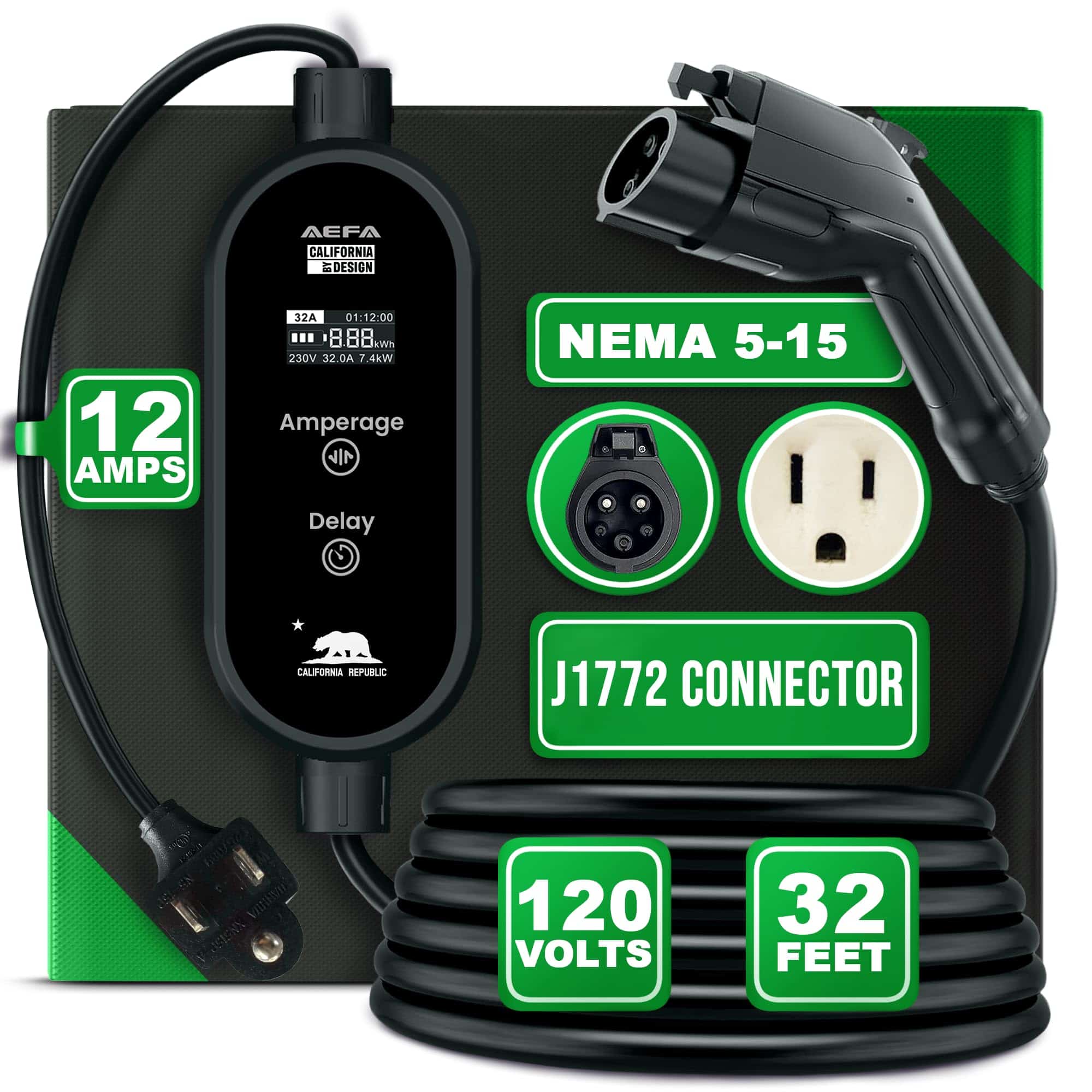 1. CARGADOR DE VE: El cargador de vehículo eléctrico Nivel 2 AEFA NEMA 5-15 proporciona hasta 12 amperios de potencia ajustable, permitiendo velocidades de carga de hasta 12 millas por hora. Incorpora temporizador de demora para programar la carga durante las horas de menor demanda, reduciendo los costos de electricidad mientras garantiza que tu VE esté listo cuando lo necesites.