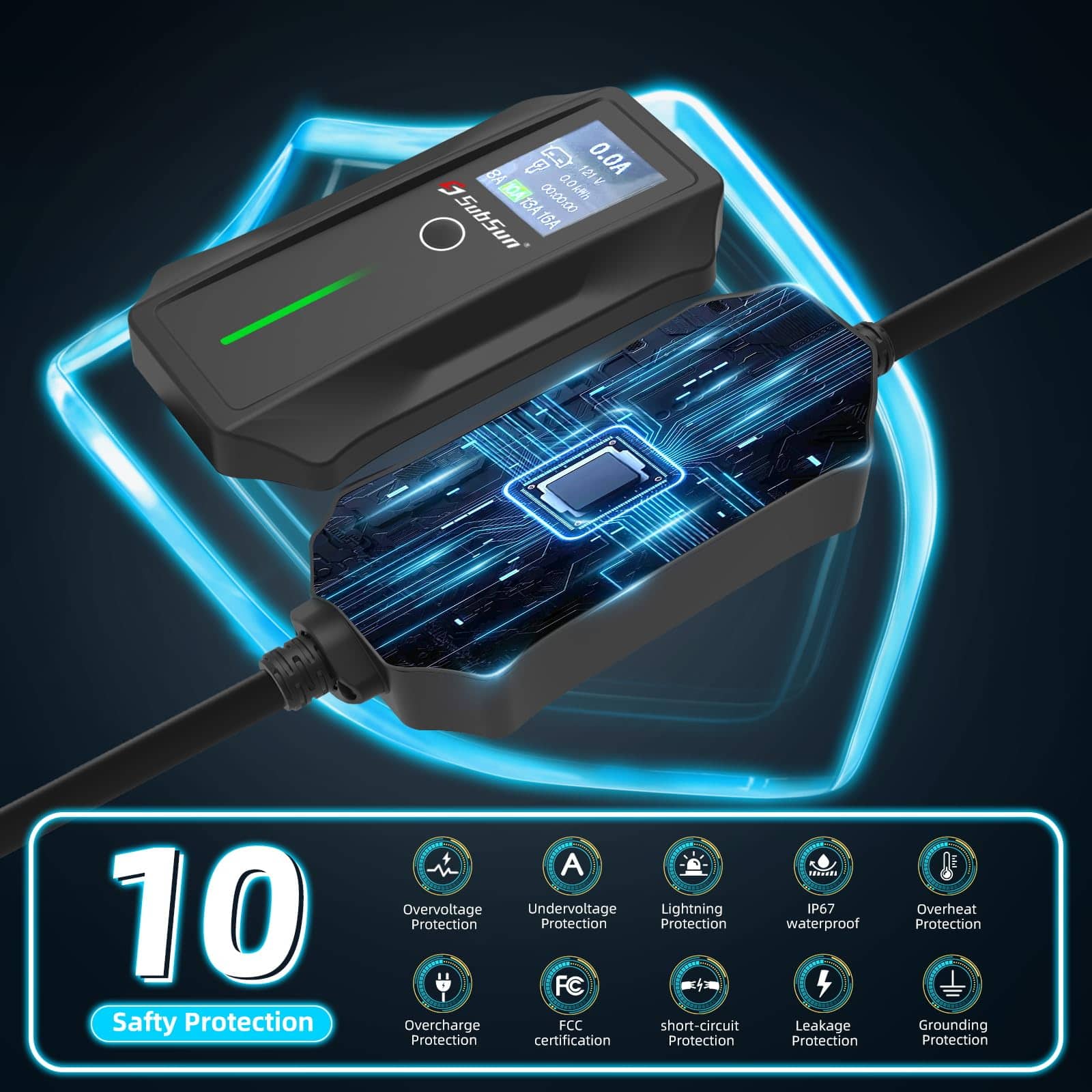Cargador de Vehículo Eléctrico Portátil Nivel 1 Nivel 2, 16 Amperios 110V/240V, con Cable de 17 pies, Enchufe NEMA 6-20 y Adaptador NEMA 5-15, Estación de Carga de Vehículo Eléctrico para el Hogar, Compatible con EVs SAE J1772 y Tesla. Este cargador J1772 es compatible con todos los vehículos eléctricos que utilizan el estándar SAE J1772, incluidos BMW, Ford, Honda, Hyundai, Kia, Porsche, Nissan y Chevrolet, entre otros. Los propietarios de Tesla necesitan un adaptador J1772 a Tesla. Certificado ETL para seguridad con protección contra sobretensión, sobrecorriente y cortocircuito; clasificación IP67 para resistencia al polvo y al agua. También proporciona protección contra rayos/fugas/puesta a tierra/sobretensión/subtensión/sobre carga/sobre corriente/sobrecalentamiento. Este cargador EV es un cargador EV de nivel 1 regular, su corriente máxima es de 16 amperios y el rango de voltaje aplicable es de 120V-240V, puede ser utilizado para EV y PHEV estándar SAE J1772. También puedes cargar tu Tesla cuando tengas el adaptador J1772 a Tesla. No te preocupes por cargar mientras viajas o estás en viaje de negocios, el cargador EV portátil LiftSun de 16 amperios incluye una bolsa de almacenamiento para facilitar el transporte y la organización en tu coche, lo que te permite cargar en cualquier lugar y en cualquier momento, sin necesidad de buscar una estación de carga de EV fuera.