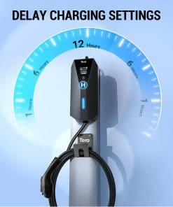 2. 2 Formas de Retrasar la Carga: El cargador EV Tera te permite programar la carga a través de la pantalla táctil incorporada y el sistema de a bordo de tu vehículo. Utilizando la pantalla táctil LED, puedes establecer el retraso de carga en incrementos horarios, hasta un máximo de 12 horas. Esta característica te permite cargar de manera conveniente durante las horas fuera de pico, ayudándote a reducir los costos de electricidad y optimizar el uso de energía.