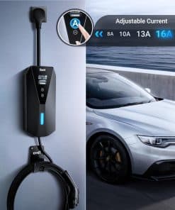 3. Corriente Ajustable: El cargador EV portátil de Tera para J1772 proporciona ajustes de amperaje ajustables: 16A , 13A , 10A , y 8A. Las tasas son las siguientes: 10-12 millas por hora a 16Amp, 8-10 millas por hora a 13Amp, 6-7 millas por hora a 10Amp, y 5-6 millas por hora a 8Amp. Puedes usar un tomacorriente doméstico estándar para la carga de Nivel 1 o actualizar a la carga de Nivel 2 para una carga más rápida según sea necesario.
