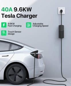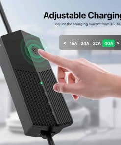 Experimente una carga de vehículo eléctrico más rápida y eficiente con este potente conector móvil de 40 amperios. El diseño elegante en negro cuenta con una carcasa duradera con aletas de enfriamiento integradas para una gestión óptima de la temperatura durante las sesiones de carga. Este cargador versátil muestra el estado de carga en tiempo real a través de indicadores LED, admitiendo múltiples tasas de carga de 15A a 40A para adaptarse a varios requisitos de energía. La unidad viene completa con un enchufe de 14-50P, 10-50P o 6-50P para tomas de corriente domésticas y un conector de carga de alta calidad compatible con vehículos Tesla. La construcción robusta garantiza un rendimiento fiable, mientras que la longitud del cable extendido brinda flexibilidad conveniente para la carga. Perfecto tanto para la carga en casa como para uso portátil, este conector móvil ofrece la capacidad de carga que necesita con la confiabilidad que espera. Recuerde verificar la capacidad eléctrica de su hogar antes de la instalación.