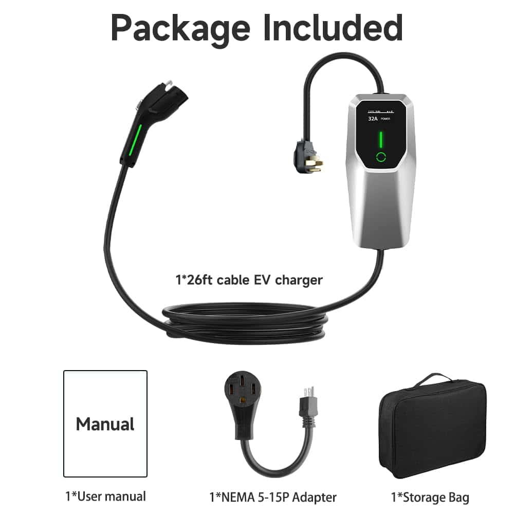 Este cargador de vehículos eléctricos de Nivel 1 y Nivel 2 es una solución conveniente y eficiente para cargar tu coche eléctrico o híbrido enchufable. Con una longitud de cable de 26 pies y un voltaje máximo de 240V, este cable de carga portátil es compatible con la mayoría de los vehículos que cumplen con el estándar J1772. Equipado con un enchufe NEMA 14-50/5-15P, este cargador te permite cargar tu vehículo de manera rápida y segura.