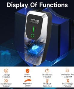 La función de pantalla multifunción te permite ajustar fácilmente la corriente de carga, programar la carga para que se realice en el momento que desees y monitorear el estado de carga en tiempo real. Con múltiples protecciones de seguridad, como Protección contra Fugas, Protección contra Cortocircuitos y Protección contra Sobrecalentamiento, puedes estar seguro de que tu vehículo estará protegido durante el proceso de carga.