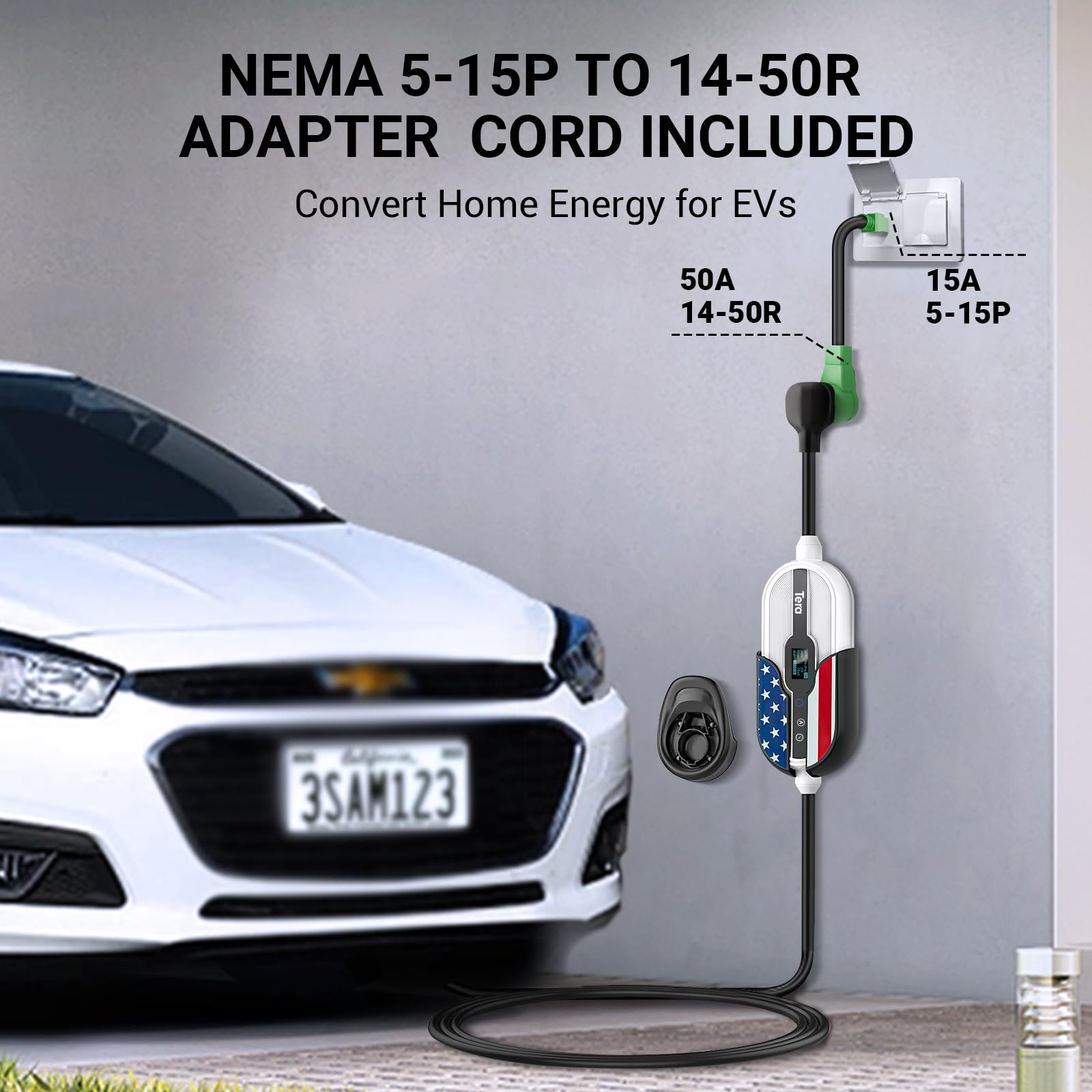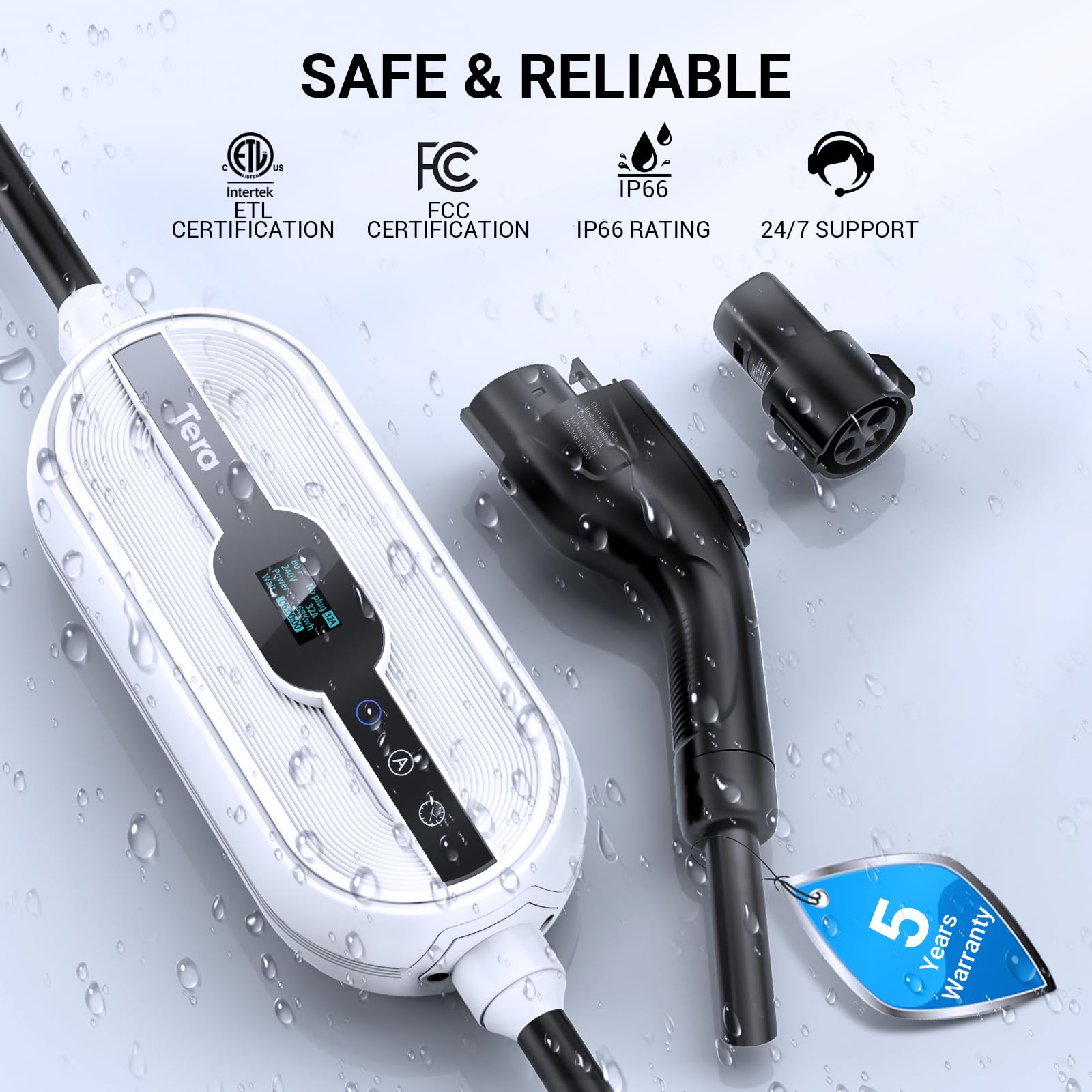 Tera Electric Vehicle Charger Level-2: Level 1 for Tesla J1772 EV 32A 8A 110V 240V Portable & Wall Connector Dual Use ETL NEMA 14-50 & 5-15 Wi-Fi Enabled 25FT Cable with Holder P01. – The EV charger supports years quality warranty and / lifetime technique support. Fit Tesla & All SAE J1772 EV: The J1772 to Tesla adapter maximizes the charging options for Tesla Model 3/Y/S/X and all J1772 electric vehicles. Experience true freedom to travel wherever you want to go! The portable EVSE features safety functions, including leakage, ground, over/ low-voltage, short circuit, over-charge and over temperature protection. 2 Usage Modes: The package includes a wall mount box holder that securely allows you to mount the portable electric car charger for Tesla and SAE J1772 on a wall. When you’re on the go, the storage bag of this dual electric vehicle charger makes it convenient to take with you. Additionally, our portable electric vehicle charger for garage boasts an IP66 rating, ensuring its resilience throughout all seasons. Whether indoors or outdoors, the portable EV charger is the perfect solution for EVs. Worth noting is the extra J1772 cable holder that bids farewell to clutter. Support Level-1 & Level-2: The home electric car charger features a NEMA 5-15P to 14-50R power cord for seamless home electrical conversion, compatible with Level 1 and Level 2 EVs. You can charge at Level 1 using a standard home outlet, or upgrade to Level 2 for up to 6 times faster speeds. ETL & UL listed: ETL is the most dynamic safety certification mark in North America. Its history can be traced back to the electrical testing laboratory founded by Thomas Edison in 1896. It has wide visibility and recognition in North America. The ETL mark indicates the manufacturer’s dedication to high standards and stand in their products. It is equivalent to UL for home insurance requirements. Smart LED Screen Display: On the smart LED screen: Clearly showcase Amperage, charging speed, input voltage, delay time, and charging practices. Package Included: Portable Level 1 & 2 EV Charger 1, Tesla Adapter 1, NEMA 5-15P to 14-50R Adapter Cord 1, J1772 Cable Holder 1, Wall Mount Box Holder 1, Storage Bag 1, EV Charger Screw Kit 1, User Manual 1. 3 Reservation Methods: Tera level 1 & level 2 portable electric vehicle charger offers support through touchscreen, smart App, and your vehicle’s onboard system reservation (plug-and-play by default). By scheduling time, you can have your vehicle charge during off-peak hours to save on costs. The App allows you to view expenses, access historical records, receive full-charge notifications, and track status. Adjustable Current with Memory Function: Tera wall-mounted EV charger with App provides adjustable current settings: 32A-8A.Charging rates: for Level-2 at 240V, it’s 22-25 miles/h at 32A. For Level-1 at 120V, it’s 5-6 miles/h at 15A. In the latest upgrade, the portable electric vehicle charger’s system remembers the last used current setting for continuous use, reverting to the default 12 amps only after a reboot. ( : Hybrid vehicles automatically reduce current based on the maximum allowed value.). Pure Copper 25FT Cable: Experience enhanced flexibility with the inclusion of a 25ft cable in this portable electric vehicle charger. With a copper content exceeding 99.5%, the portable EV charger ensures excellent conductivity, fast charging, waterproof performance, and minimal heat generation. Compared to common alloy copper cables found in the market, our EV charger level 1 & level 2 provides more stable output and enhanced safety. UL Number: UL E345899. Kindly Note 1. Touch Button Usage: For the touch buttons: Pull out the charging connector, otherwise the touch buttons will no respond. 2. Charging Issue: If your mode is set to «APP Start», simply pull out the charging gun, long-press the » Button,» switch to «Plug-and-Play» mode, and you’ll be good to go. 3. Current Adjustment via APP: To make adjustments using the App, please pause the charging process first, as adjusting during charging may result in abnormal behavior.