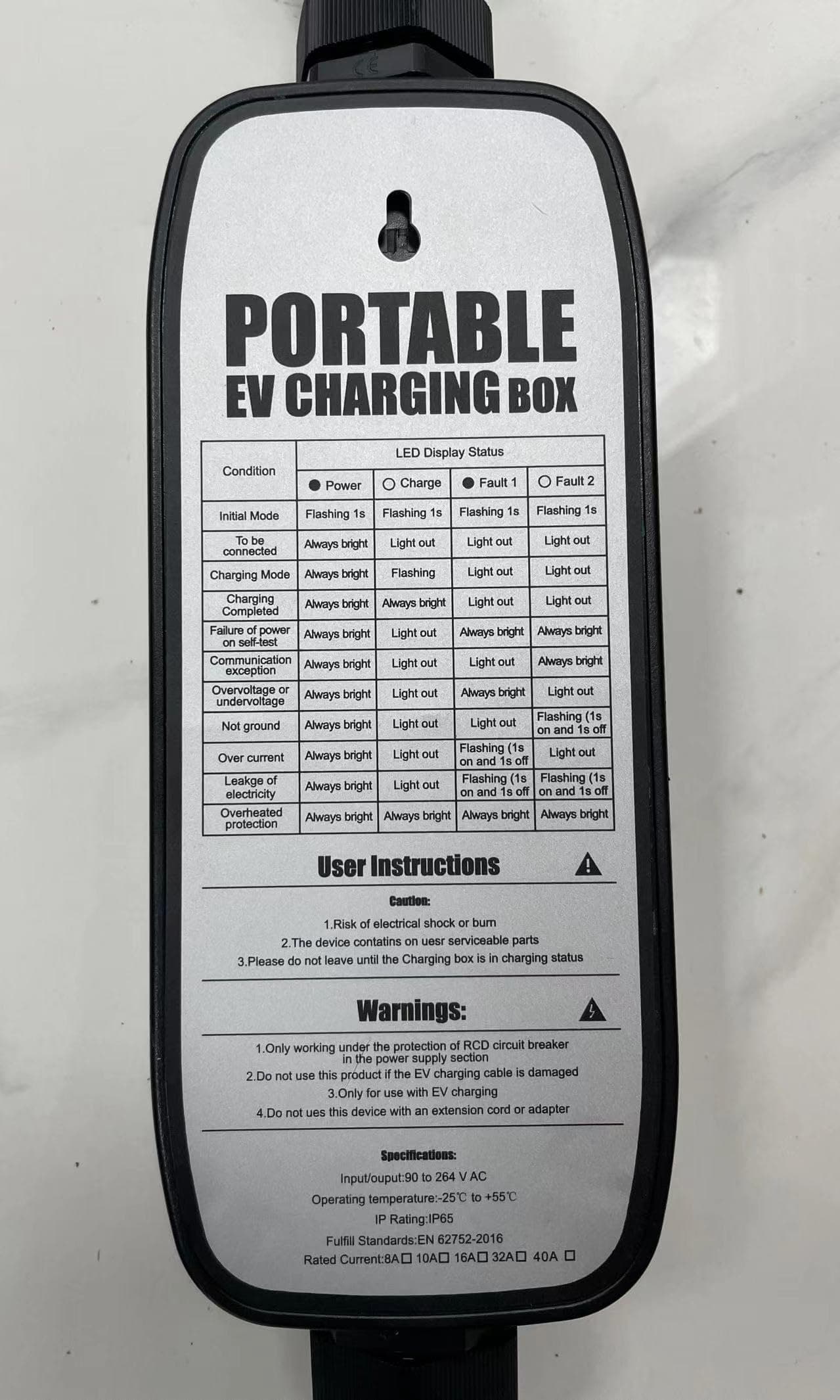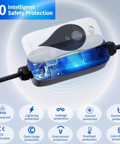 1. Cargador de Vehículos eléctricos nivel 1+2: Este cargador portátil es compatible con vehículos eléctricos y ofrece una variedad de voltaje de 16 Amperios de 90V-260V.